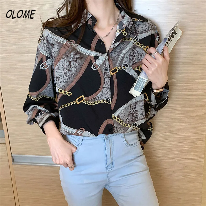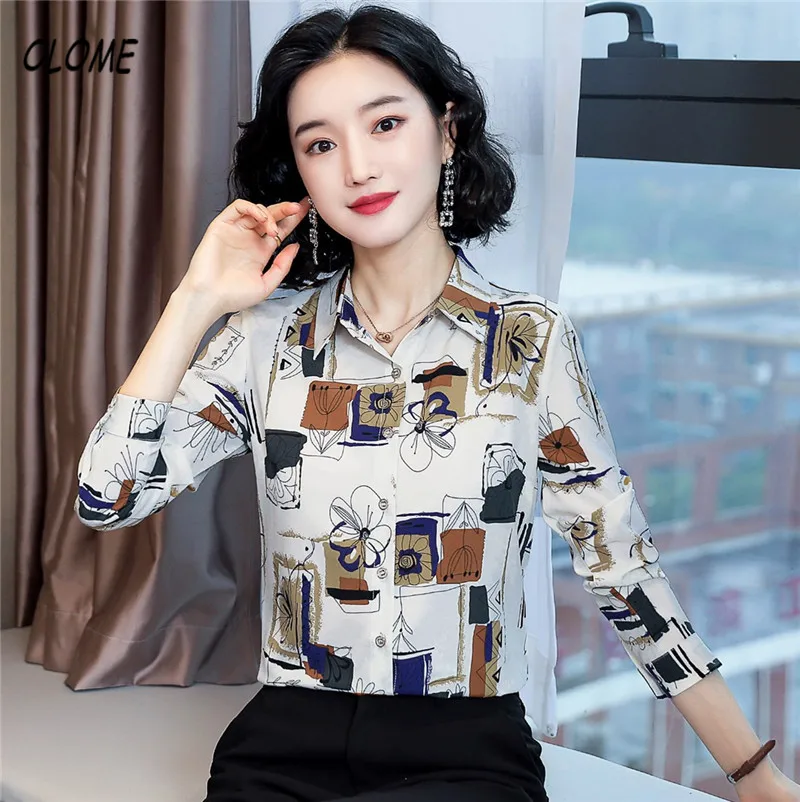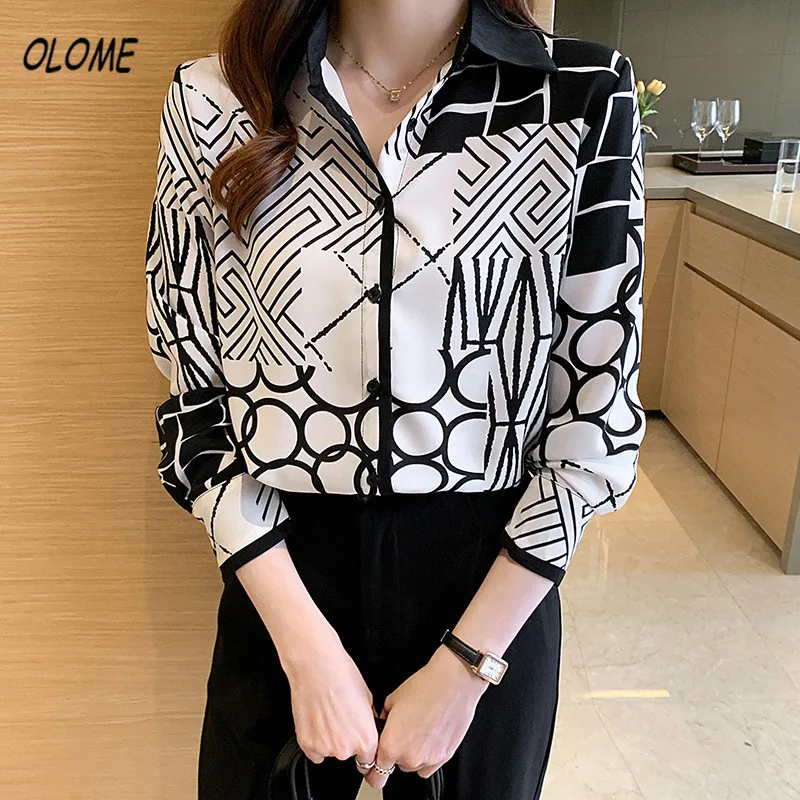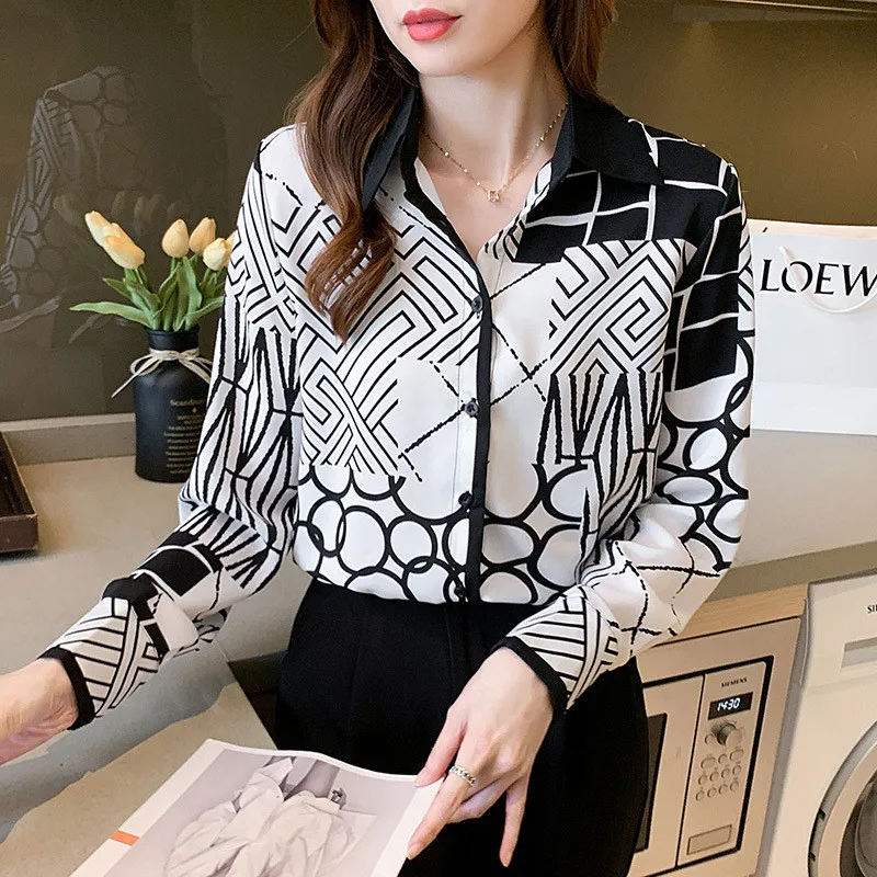 Женская блузка с длинным рукавом и принтом в виде решетки