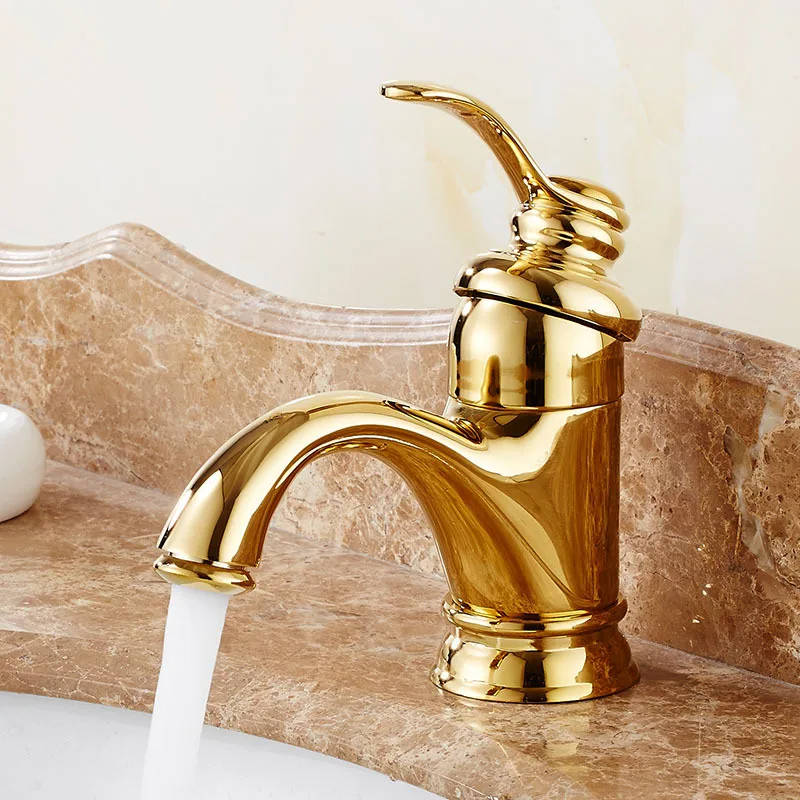 Медный золотистый смеситель в европейском стиле, античный смеситель для раковины, раковина для ванной комнаты, раковина для горячей и холодной умывальника в стиле ретро