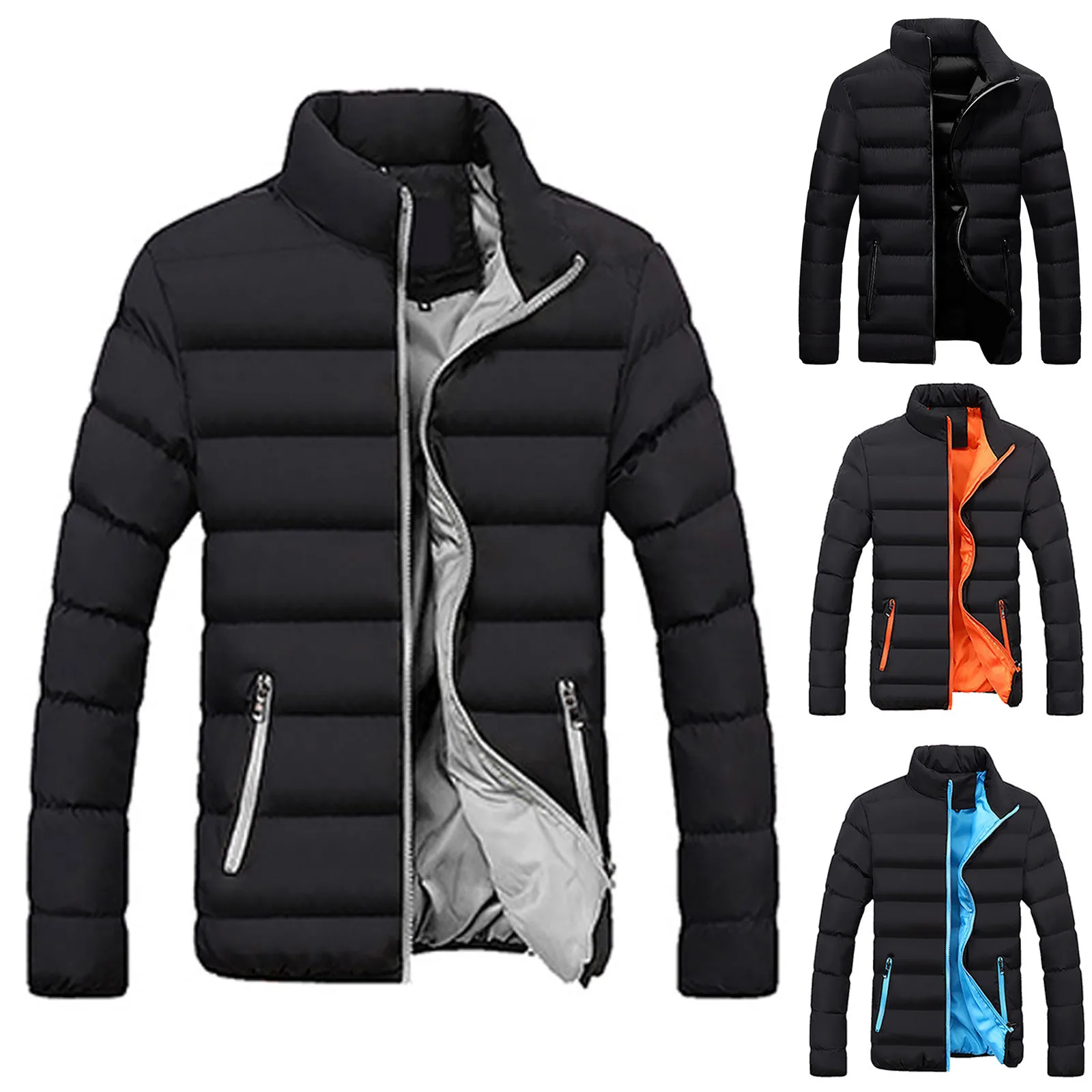 Мужская стеганая куртка с воротником-стойкой, с карманами на молнии и бархатной подкладкой, сохраняющая тепло зимние уличные зимние куртки
