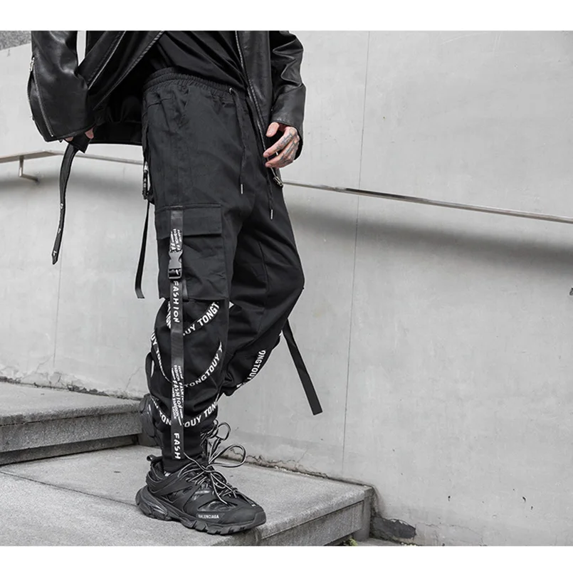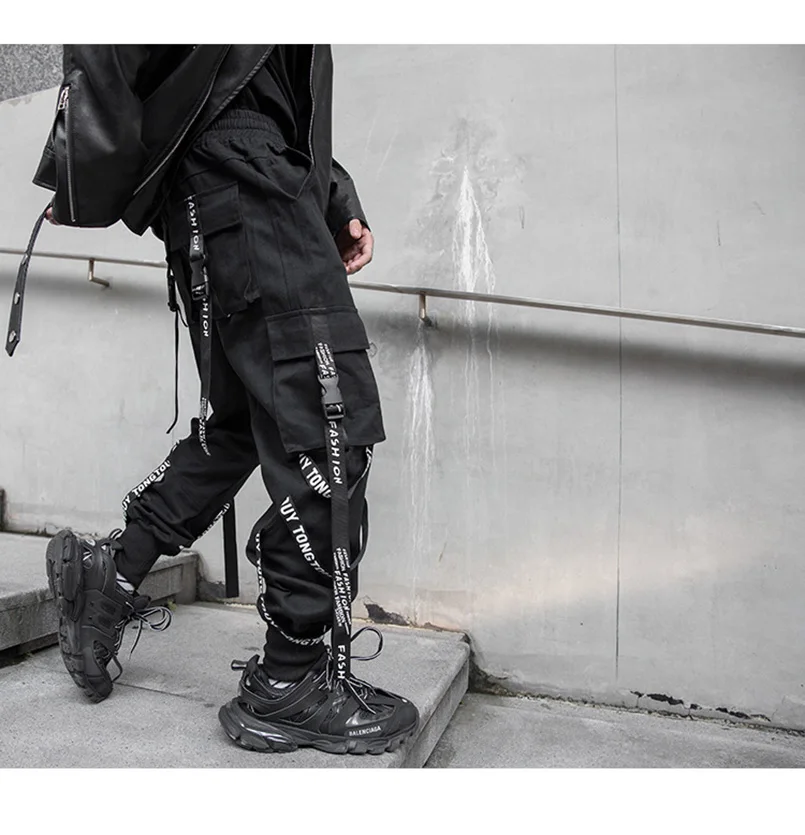 Мужские брюки-карго с лентами, трендовые, брендовые, свободные, уличная одежда, корейский хип-хоп, мужские брюки на осень