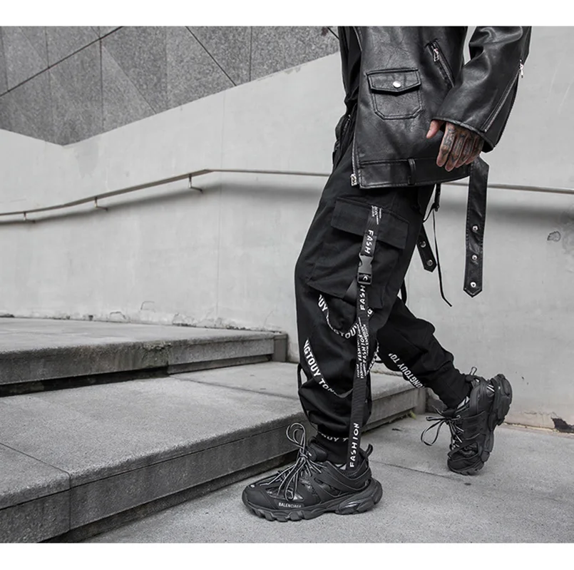 Черные брюки-карго в стиле хип-хоп, модные готические брюки в стиле...