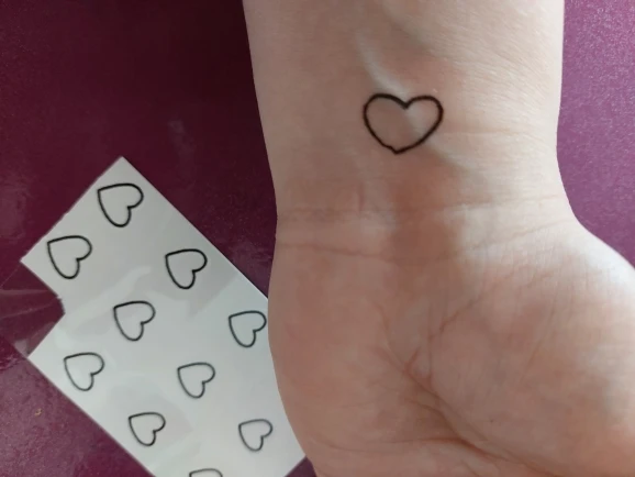 Татуировка была очень милой и представлена в разных размерах. И его легко надеть, он дал мне грубое представление о том, как татуировка сердца будет выглядеть на мне