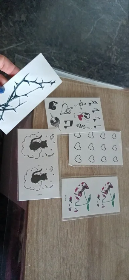 Превосходно, получил через 3 недели. Вот что это дает на мою кожу! Так что наклейка легко наносится, я помыл ее, и она осталась! Я сделал шутку с мамой, полагая, что это было правдой, результат был очень расстроен lol, потому что это кажется настолько правдой!