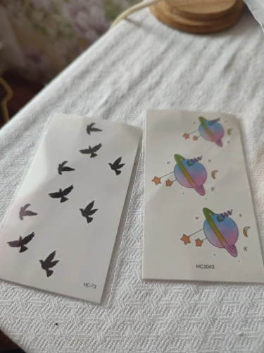 ОписаниеРазмеры: 6*10,5 см Посылка включает в себя1 лист Руководство пользователя:1. Вырежьте татуировку на выбор и удалите прозрачный лист.2. Нанесите татуировку на кожу.3. Намочите татуировку губкой.4. Через 20-30 секунд Аккуратно удалите подложку.5. Позвольте татуировке высохнуть. Как удалить:1. Татуировка мазком с натиранием алкоголя или детского масла.2. Подождите 10 секунд, затем аккуратно и повторно протрите, пока не удалите.