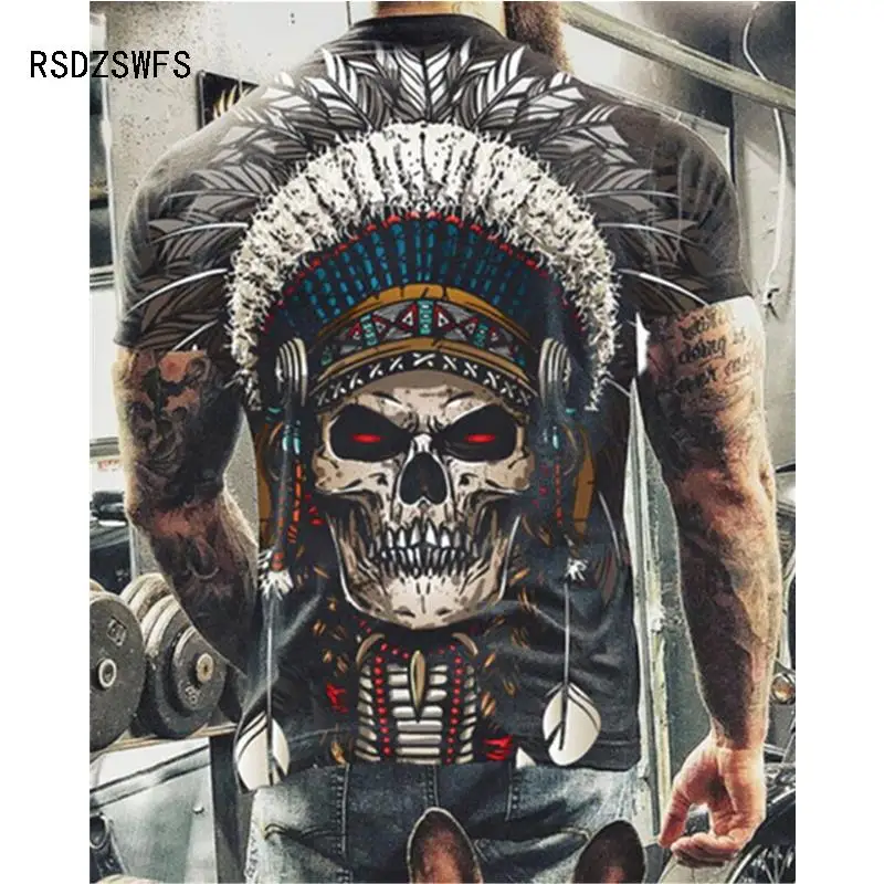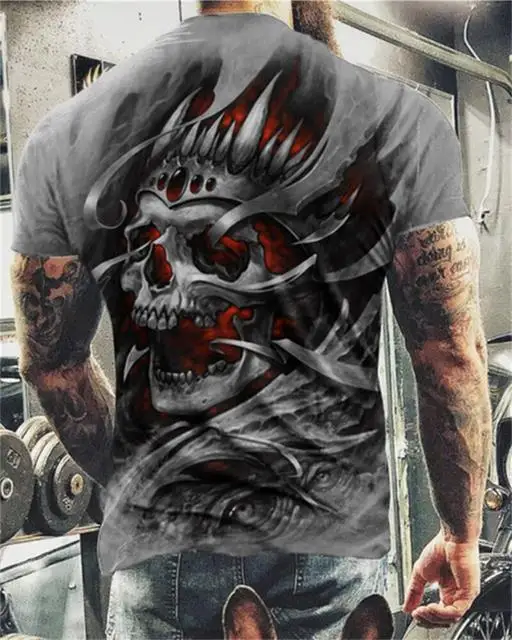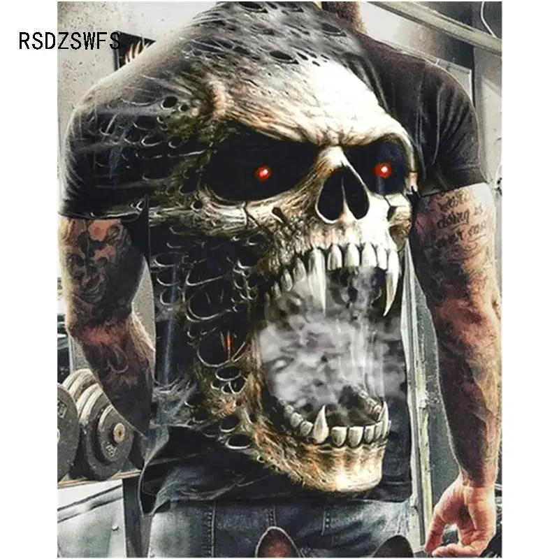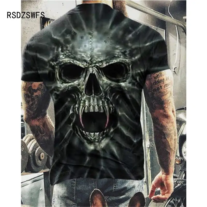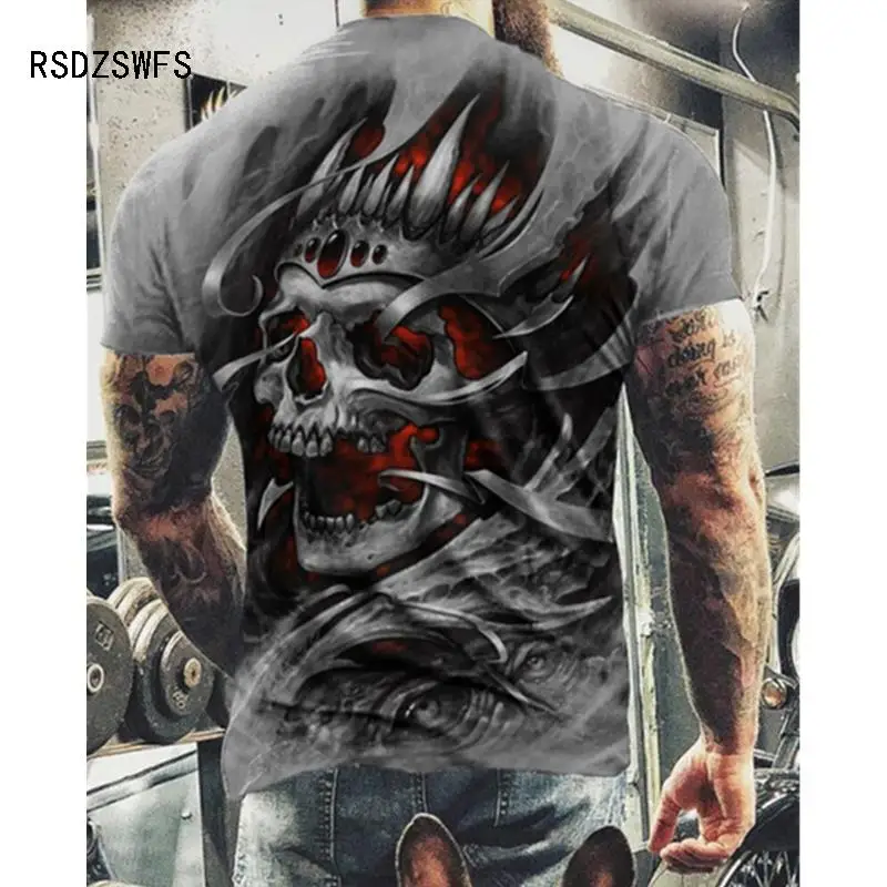 Футболка мужская оверсайз с коротким рукавом, повседневная тенниска с принтом черепа в стиле панкРок3D, модная спортивная майка в уличном стиле, лето