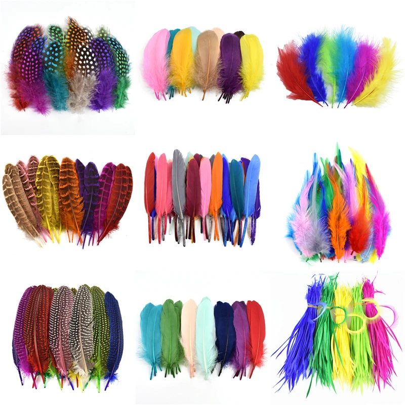 Разнообразные цветные комбинации гусиных страусиных перьев для рукоделия, Шлейфы цыпленок фазана, перо индейки, павлина, украшение сделай сам