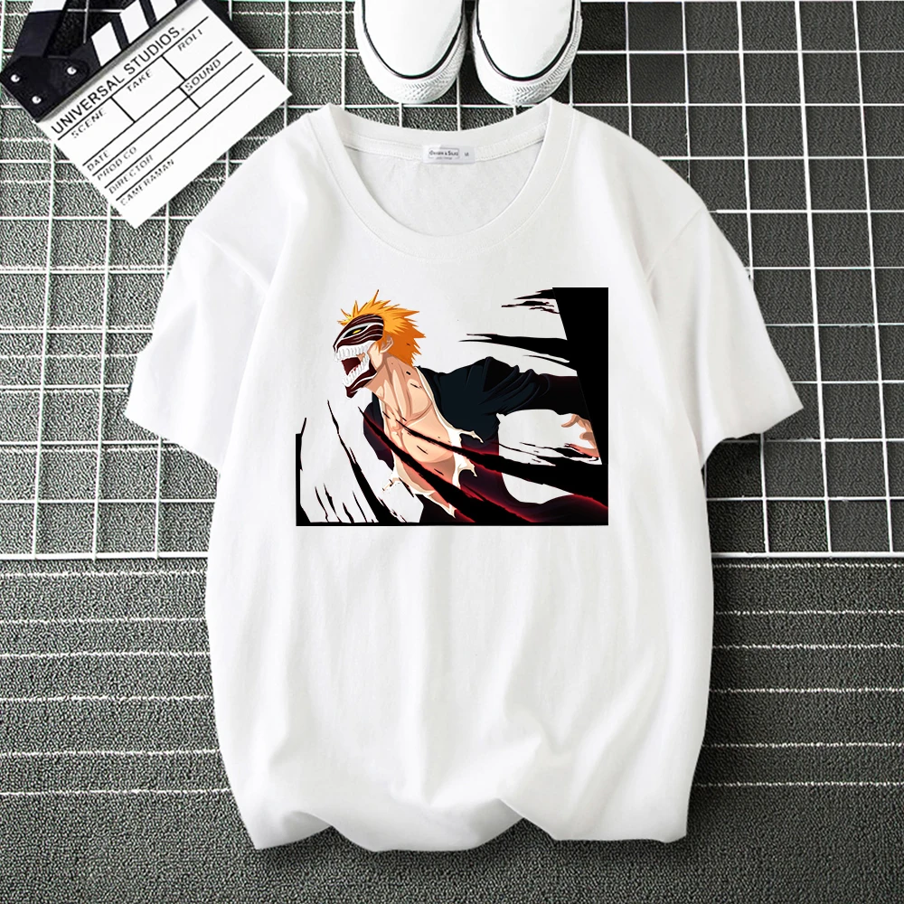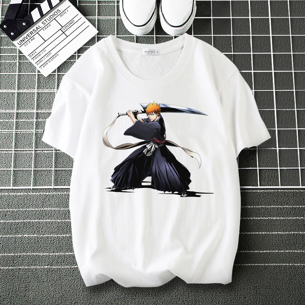 Забавные хлопковые футболки с аниме принтом отбеливатель Ichigo для мужчин и женщин, повседневные футболки в стиле хип-хоп, летние брендовые топы, мужские Мультяшные футболки в стиле Харадзюку