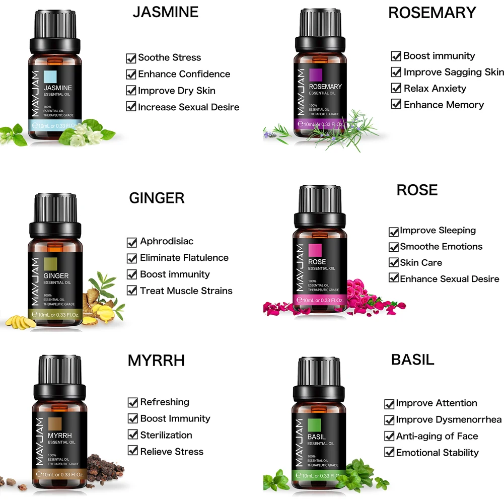 Эфирное масло жасмина 10 мл, ароматические масла, лаванда, ваниль, ветивер, сандаловое дерево, эвкалипт, мятный чай, масла для ухода за кожей