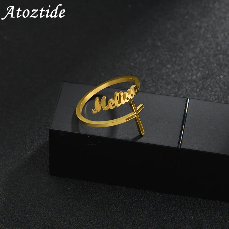 Название:Atoztide, индивидуальный заказ, модное кольцо из нержавеющей стали с двойными именами, персонализированные золотые кольца с буквами, именная табличка, ювелирное изделие, подарок для женщин