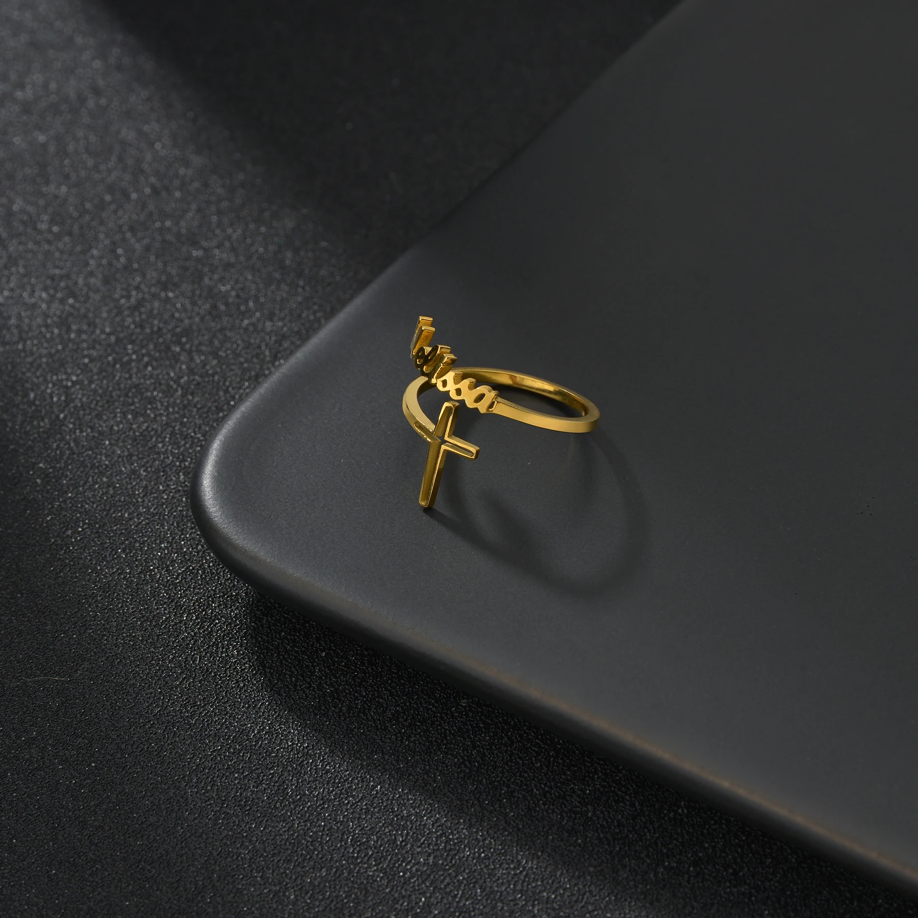 Кольцо с именем на заказ, модное кольцо из нержавеющей стали золотого цвета с именной табличкой, ювелирные изделия, кольца для женщин, рождественский подарок