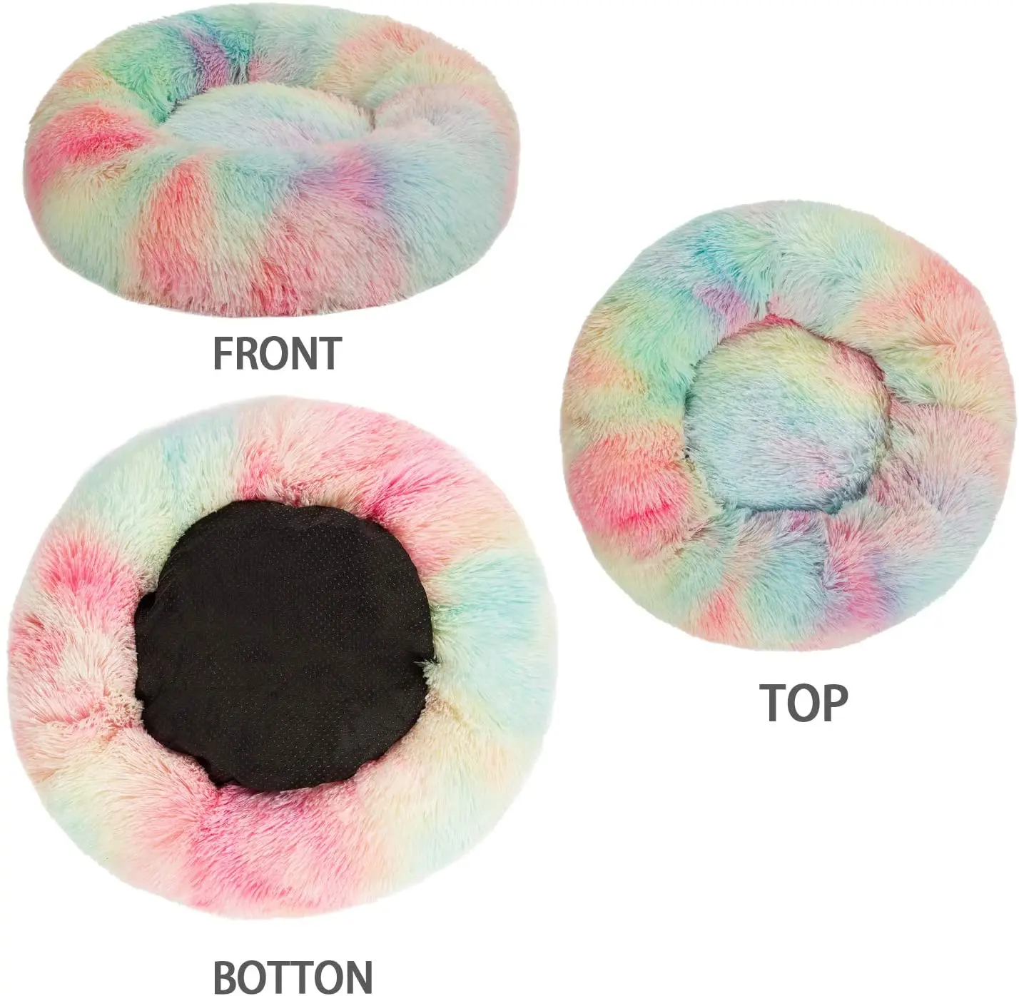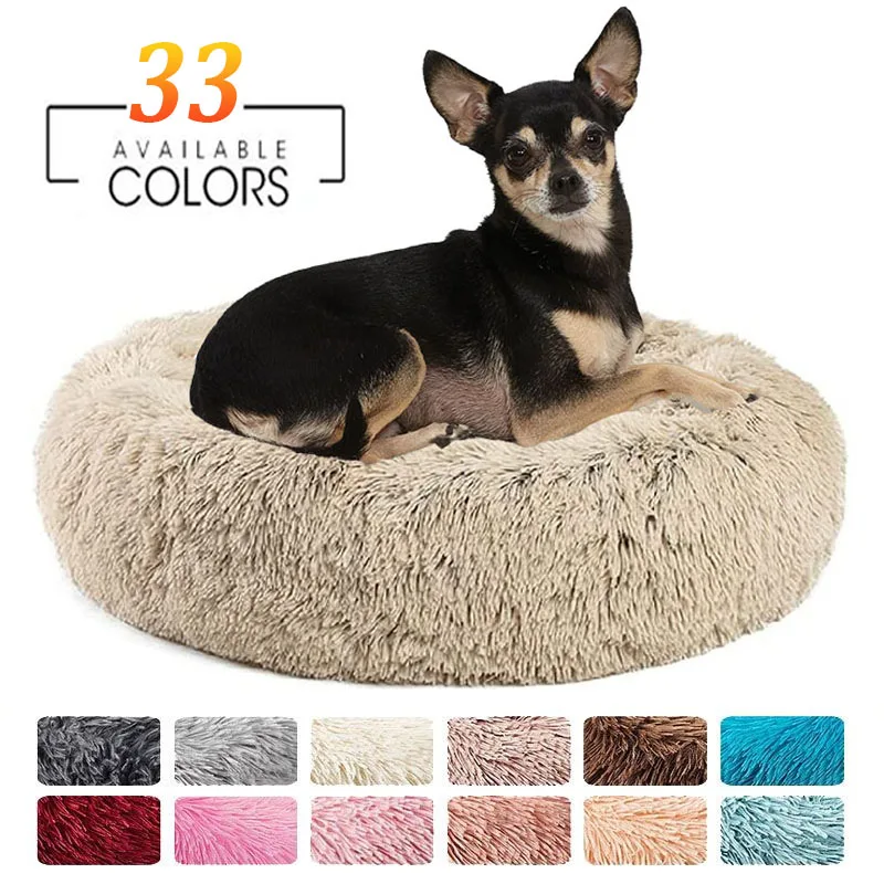 Кровать для домашних животных, собака, кошка, длинный плюшевый супер мягкий диван для сна, моющаяся цветная круглая кровать, зимняя теплая кровать для собак, кошек, коврик для сна, товары для домашних животных