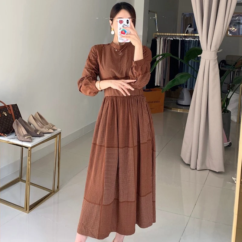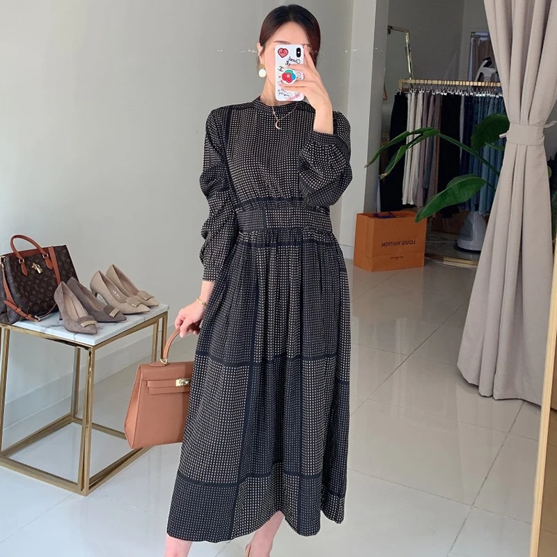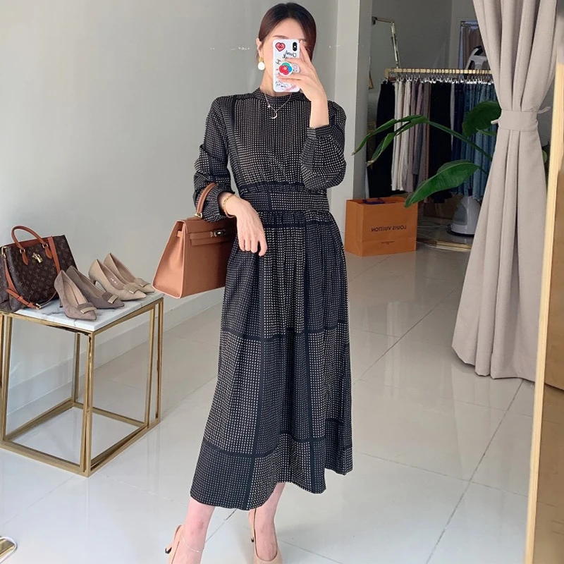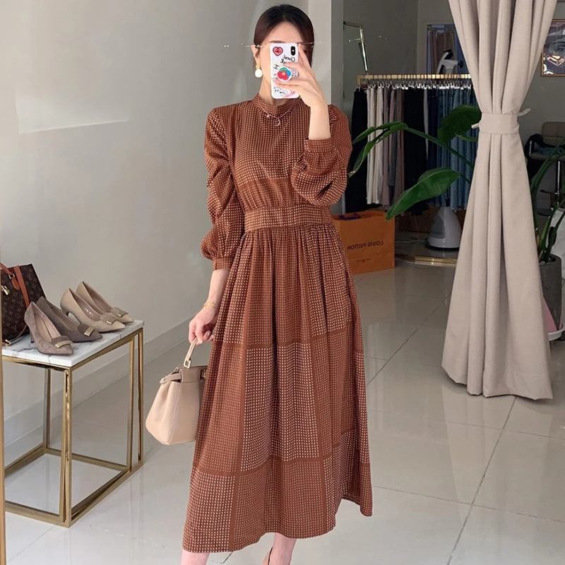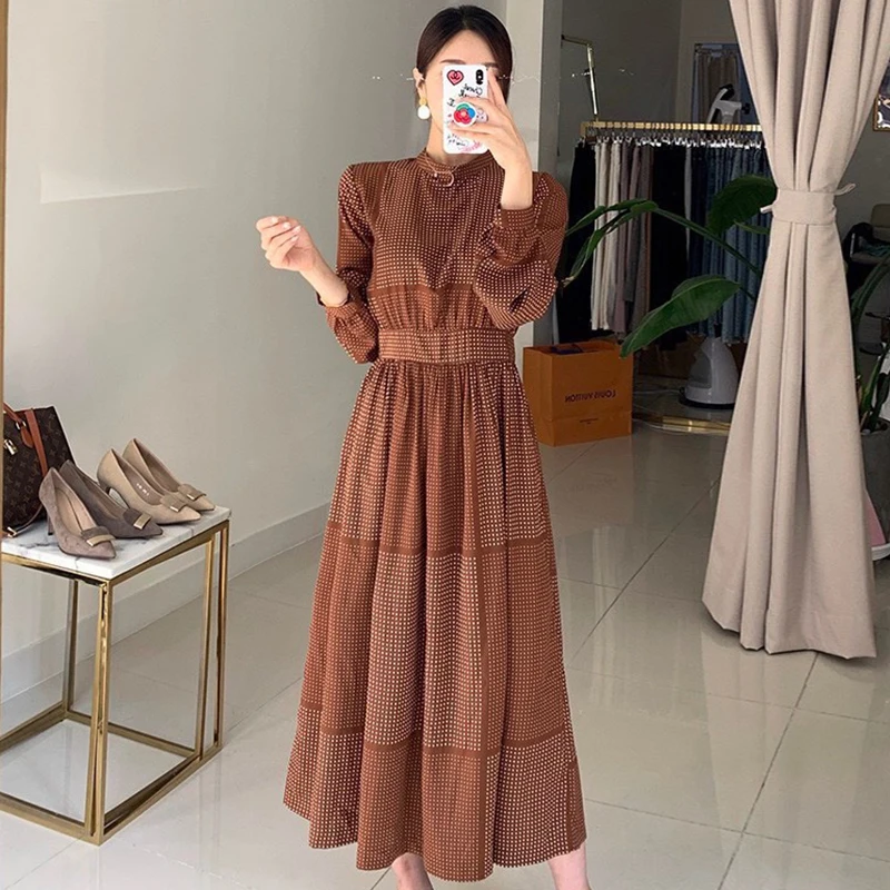Gagarich клетчатое платье в горошек, женское корейское шикарное элегантное темпераментное платье с воротником-стойкой, дизайнерское приталенное платье с пышными рукавами