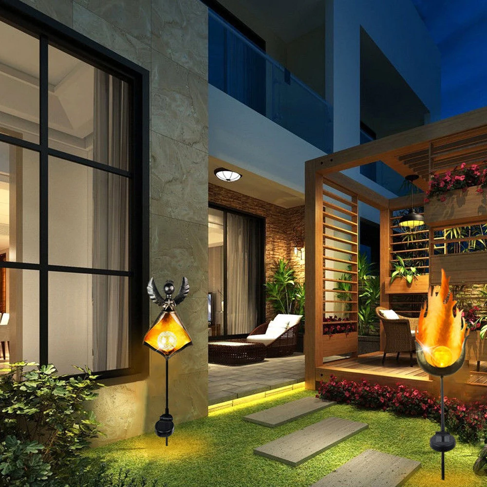 Светодиодный светильник на солнечной батарее с эффектом пламени, водонепроницаемая уличная лампа для ландшафта, декоративный зонт для внутреннего дворика с светодиодный нием от солнечного света