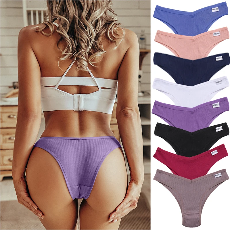 FINETOO Хлопковые женские трусики, сексуальное нижнее белье с v-образным вырезом, трусы с Т-образной спиной, женские бразильские трусики, женские трусы, нижнее белье
