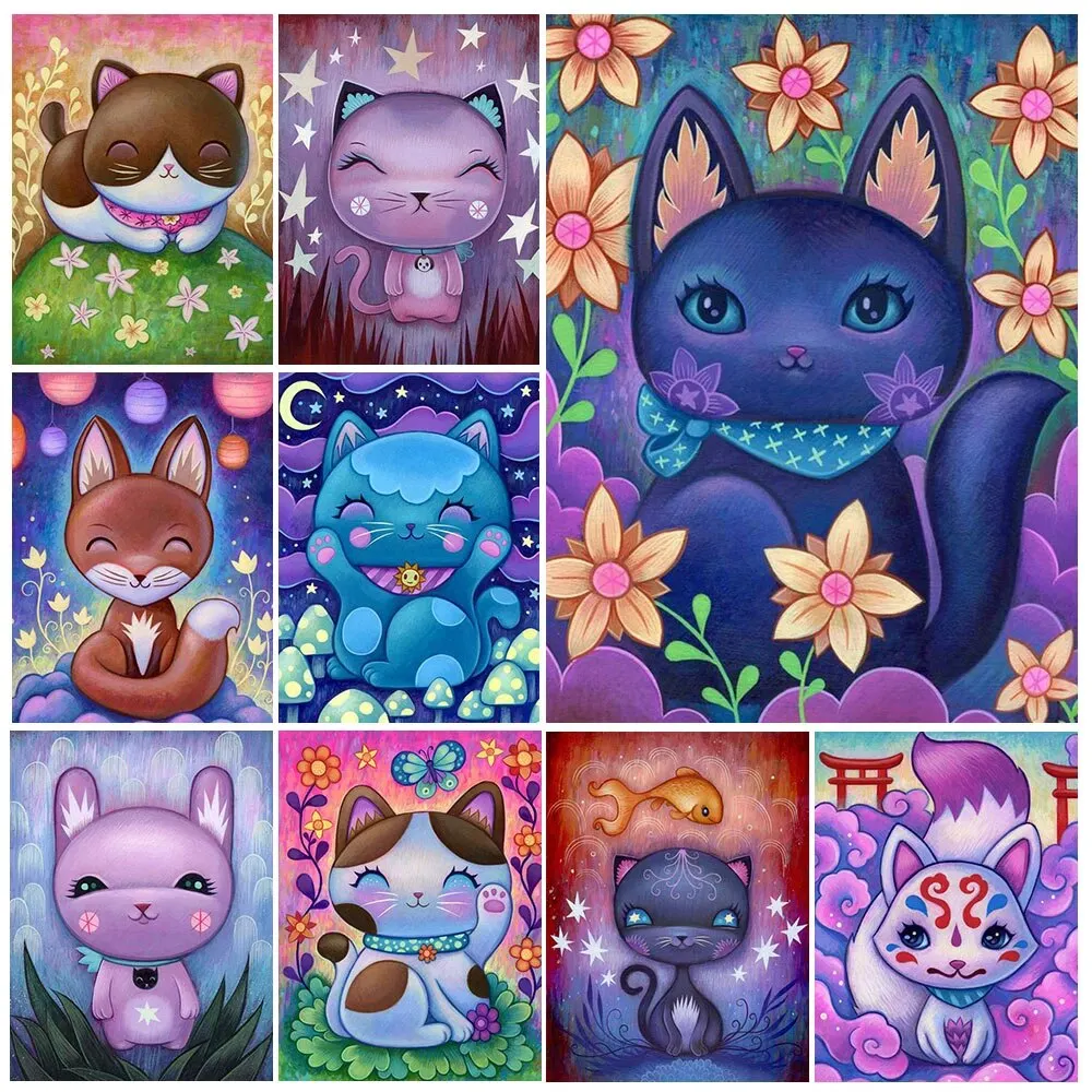 Набор для алмазной вышивки квадратными и круглыми стразами, картина 5D сделай сам из смолы с мультяшным котом, стразы с вышивкой крестиком с животными, домашний декор, подарок