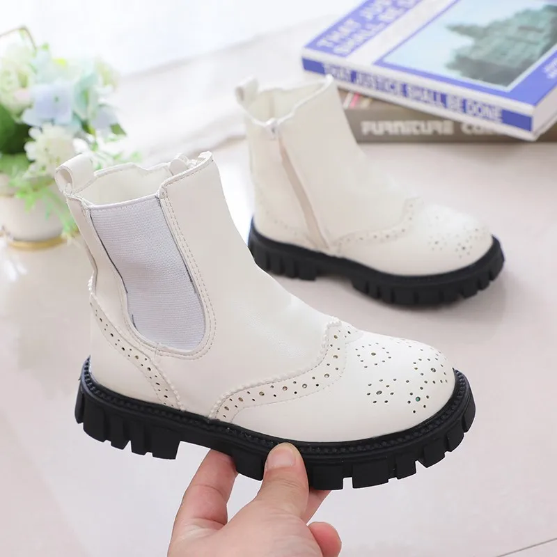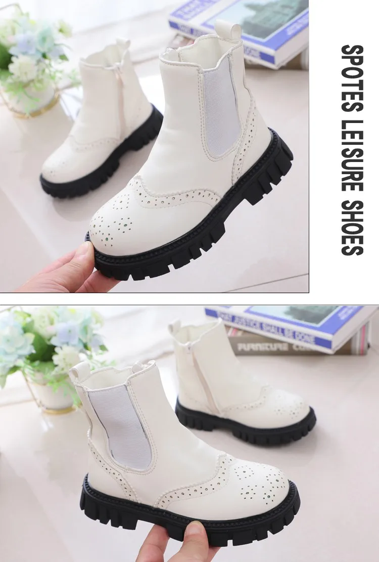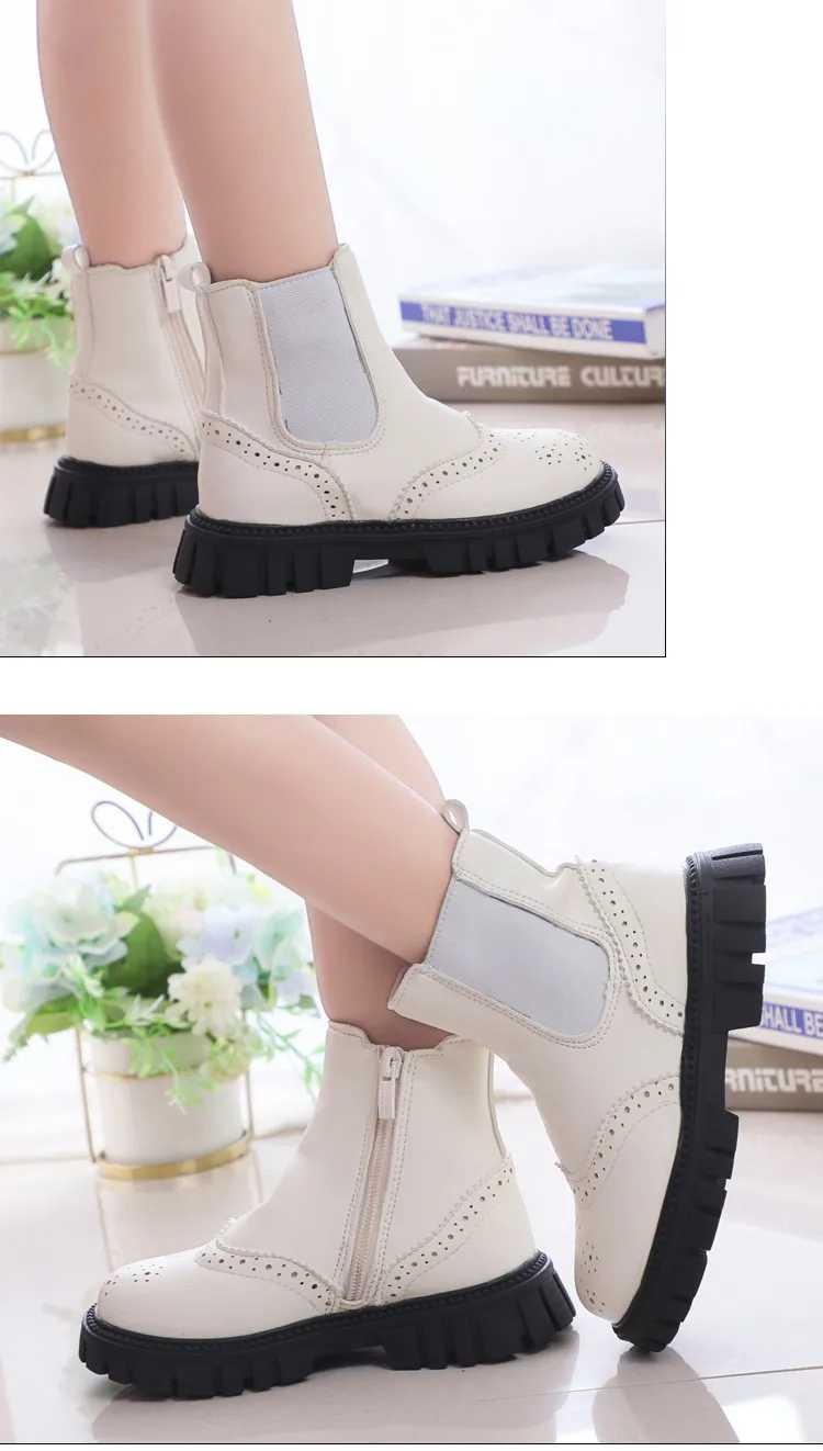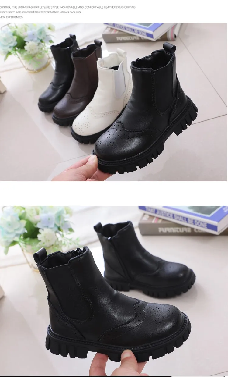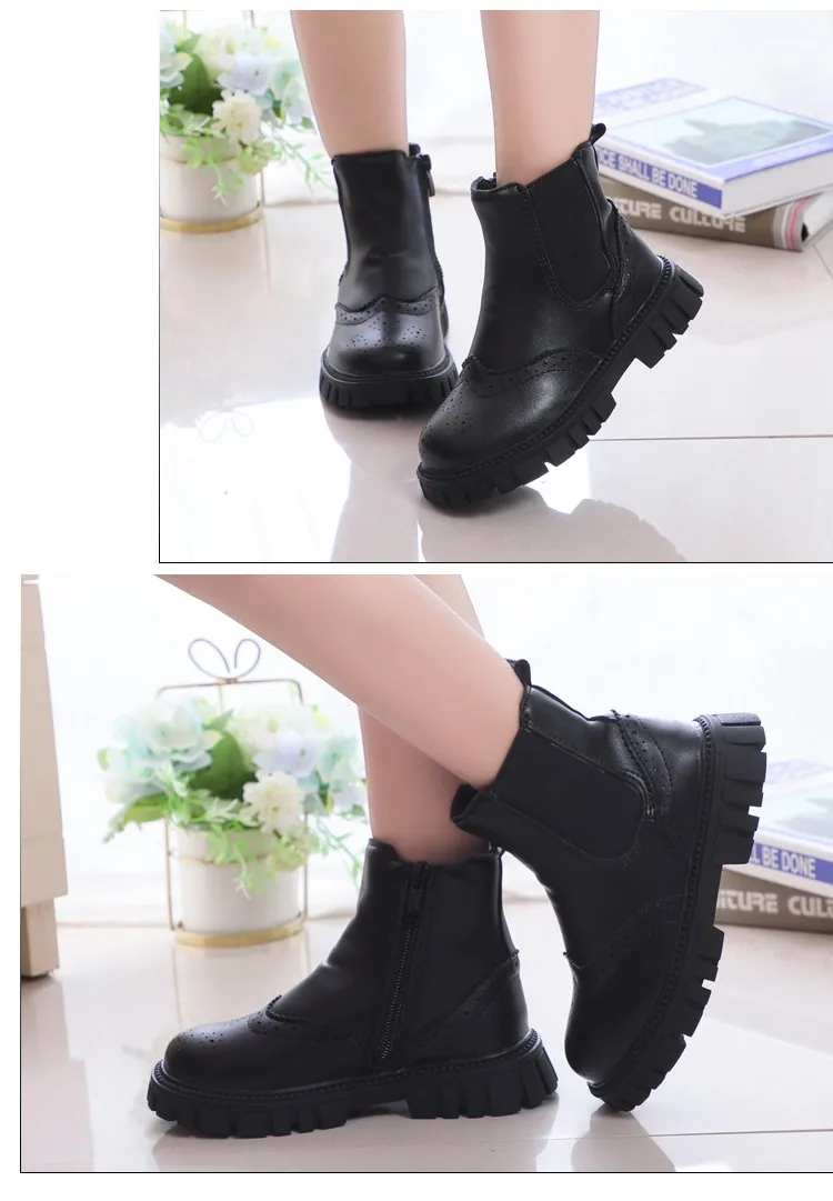 Детские Ботинки Челси в британском стиле, короткие теплые зимние модные элегантные ботинки на платформе, на молнии, плоская подошва, для мальчиков и девочек