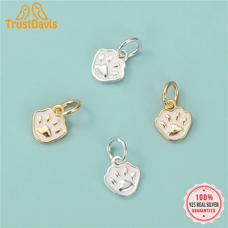 TrustDavis Настоящее серебро 925 пробы модная глазурованная собака следы Очаровательная подвеска ручной работы DIY аксессуары изысканные ювелирные изделия S925 HY453