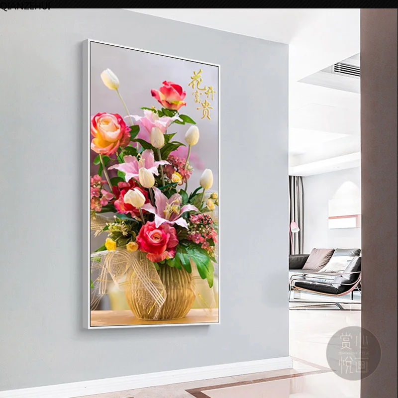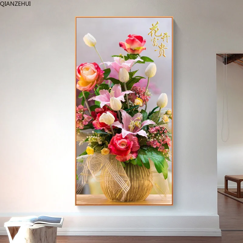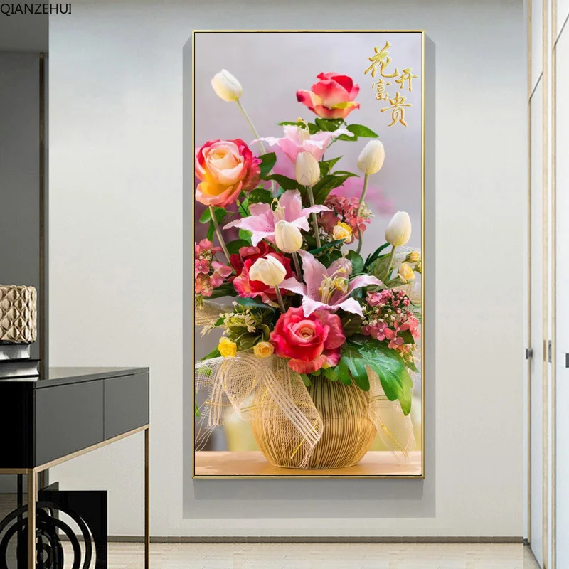 QIANZEHUI,DIY 5D алмазная вышивка, круглые алмазы богатство цветы п...