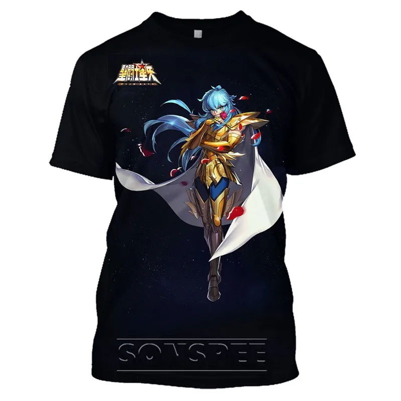 Мужская и женская футболка с 3D-принтом аниме Saint Seiya, золотистая модная футболка с рисунком из мультфильма, летние топы, футболки, 2021