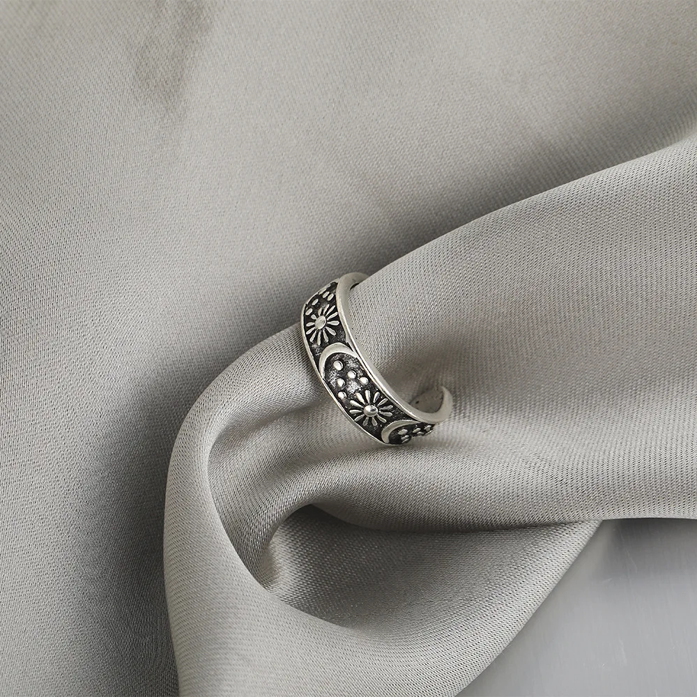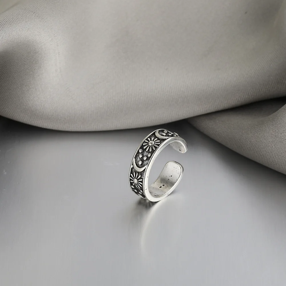 Женское кольцо из меди, серебристое кольцо с подвеской в стиле ретро