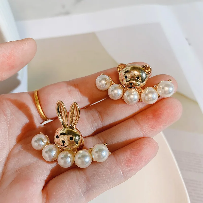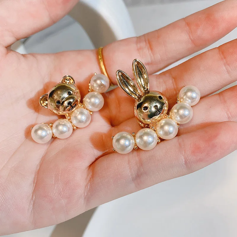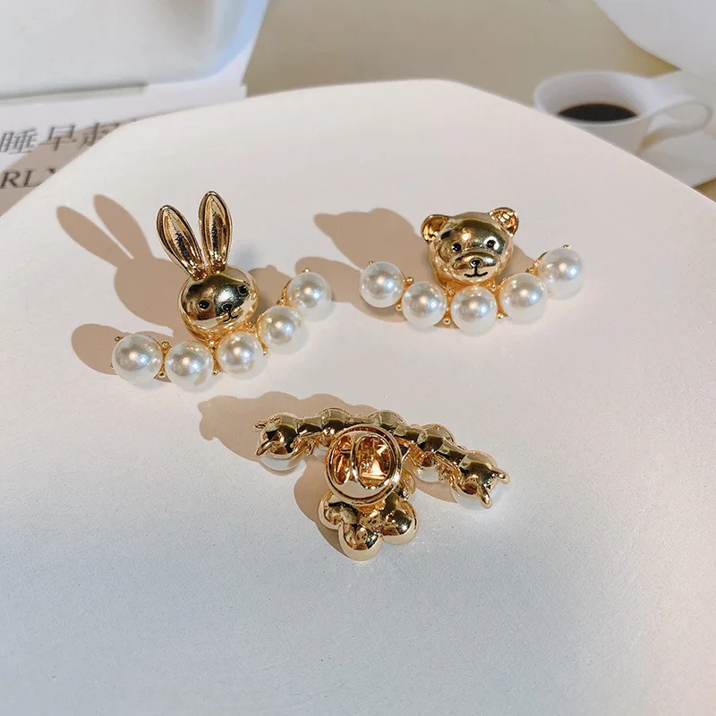 Креативная брошь в виде милых животных с жемчугом из мультфильма, высококачественные аксессуары, металлическая брошь на шею, одежду