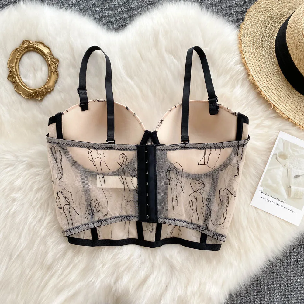 Топ-бюстье Женский, сетчатый, тонкий, с цветочным принтом, на груди...