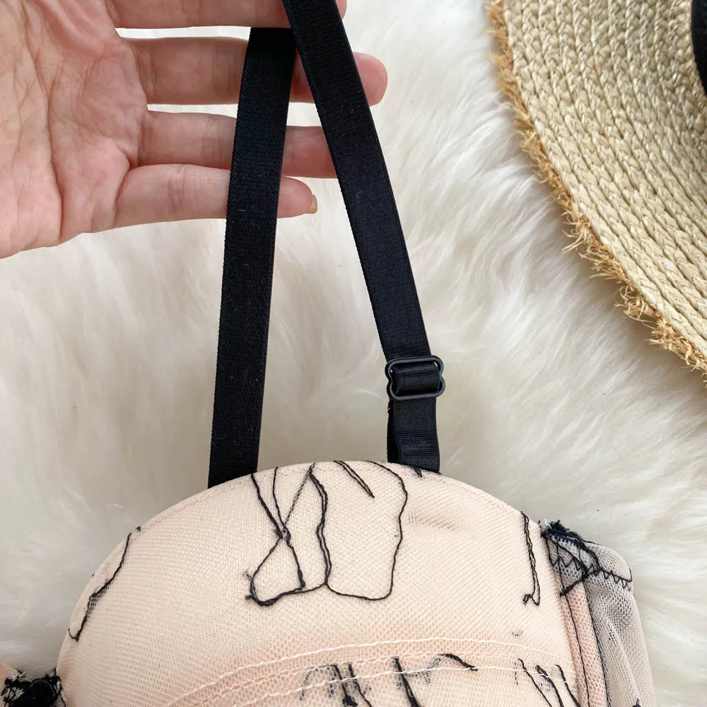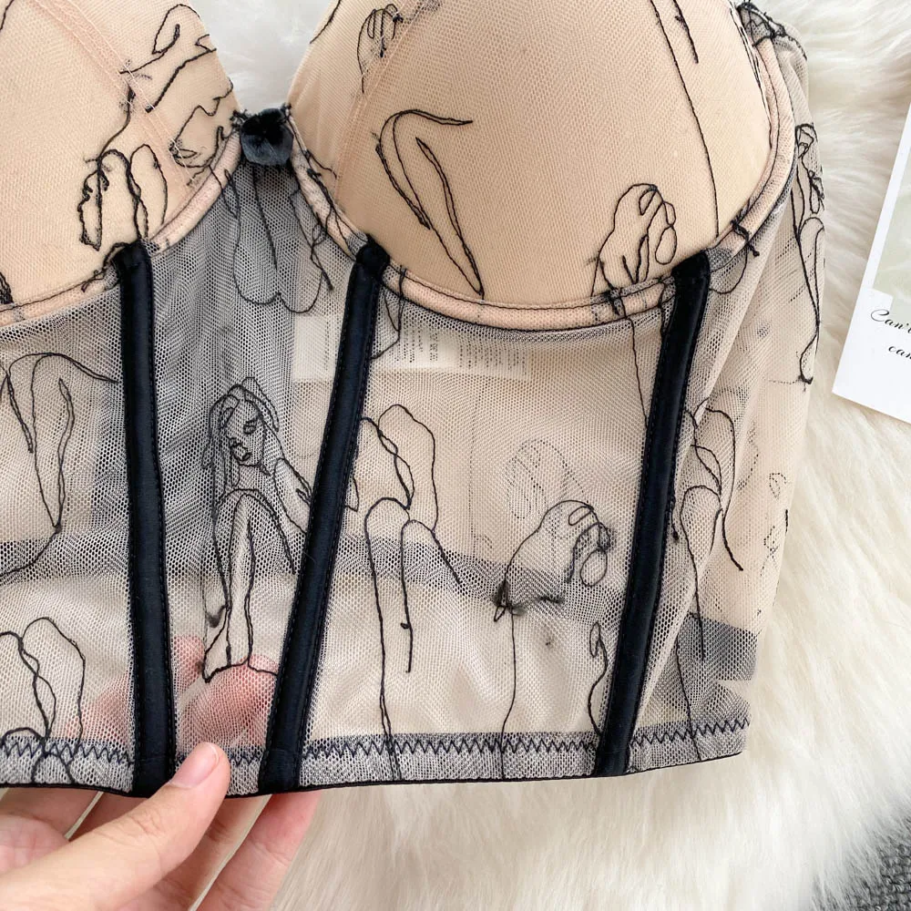 Женский сетчатый бюстгальтер-бюстье D391, с бусинами и алмазной цеп...