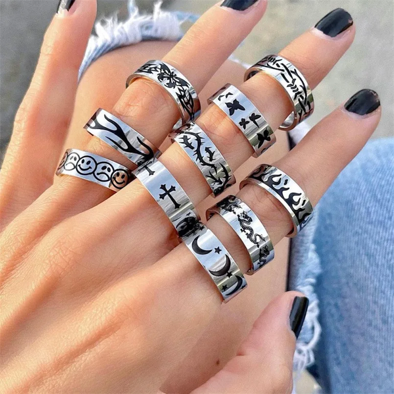 Кольца в стиле хип-хоп в стиле панк из нержавеющей стали с языками пламени для женщин и мужчин, винтажные готические кольца, модные ювелирные украшения для пар