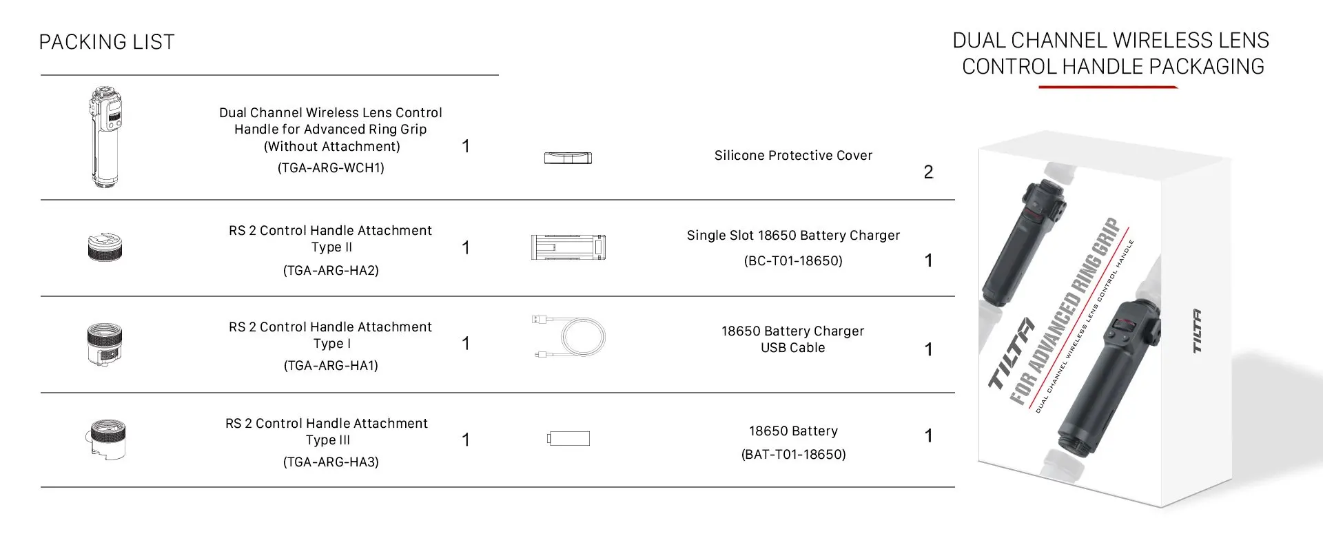 Основное кольцо не включает в себя аккумуляторную пластину, а совместимые аккумуляторные пластины в настоящее время не доступны для покупки отдельно. Кольцевая ручка включает адаптер для ручки аккумулятора RS2, который позволяет ему работать в качестве верхней ручки кольца и обеспечивать питание карданного шарнира. Эти батареи должны быть доступны к концу года.