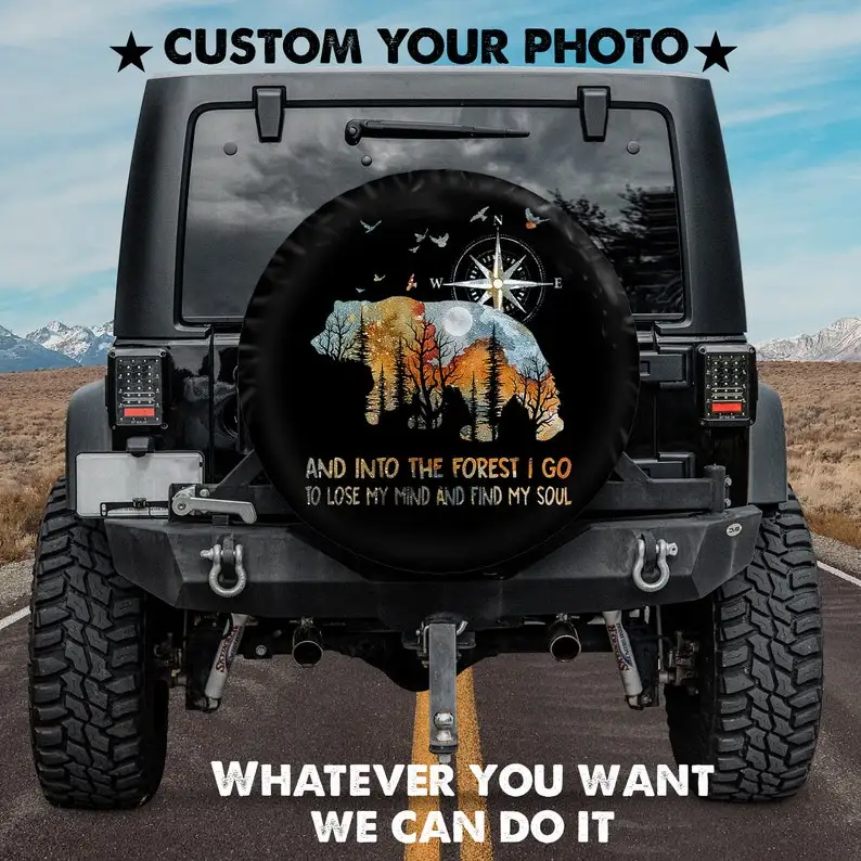 Медведь в лесу я иду из-за разума и нахожу свою душу запасной чехол для автомобиля, персонализированный Чехол для шин, подарок