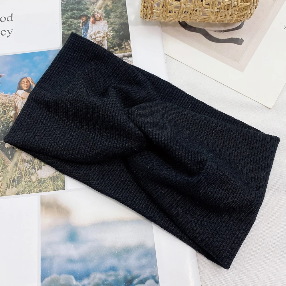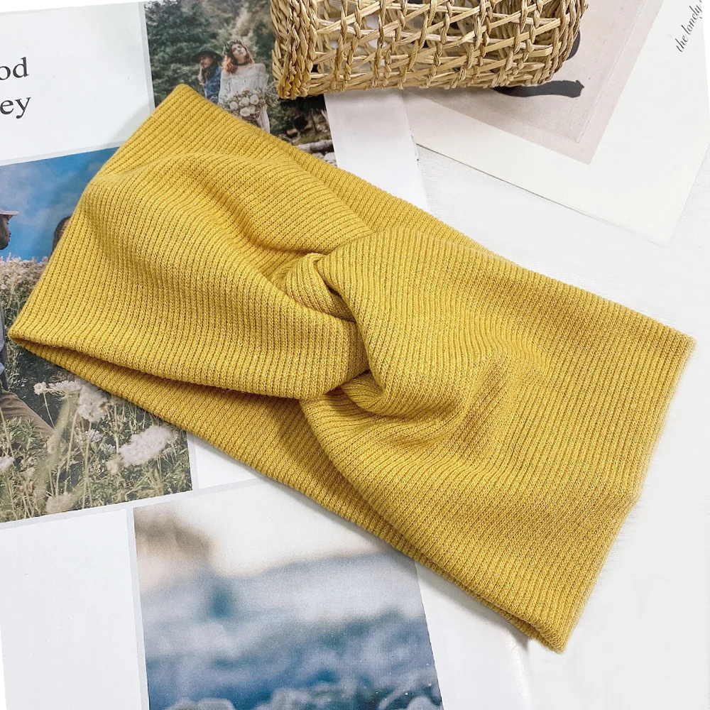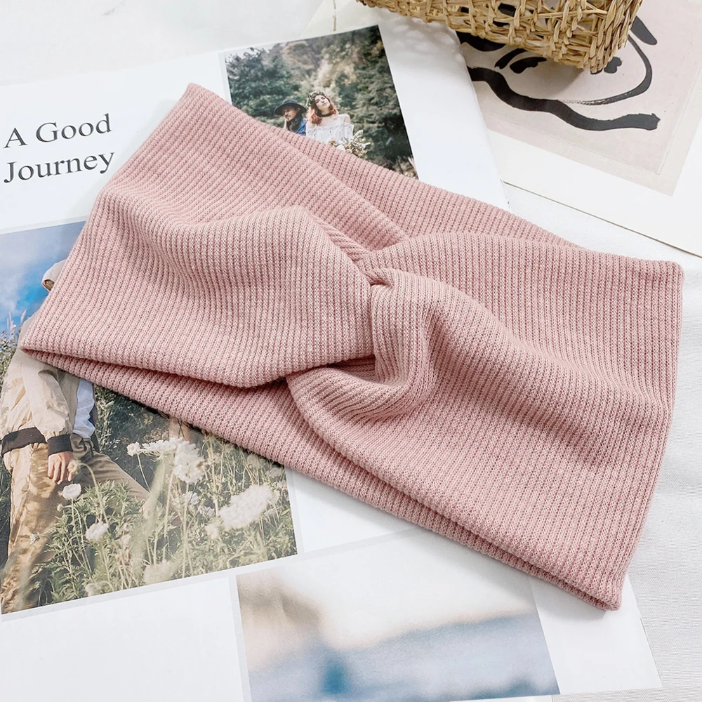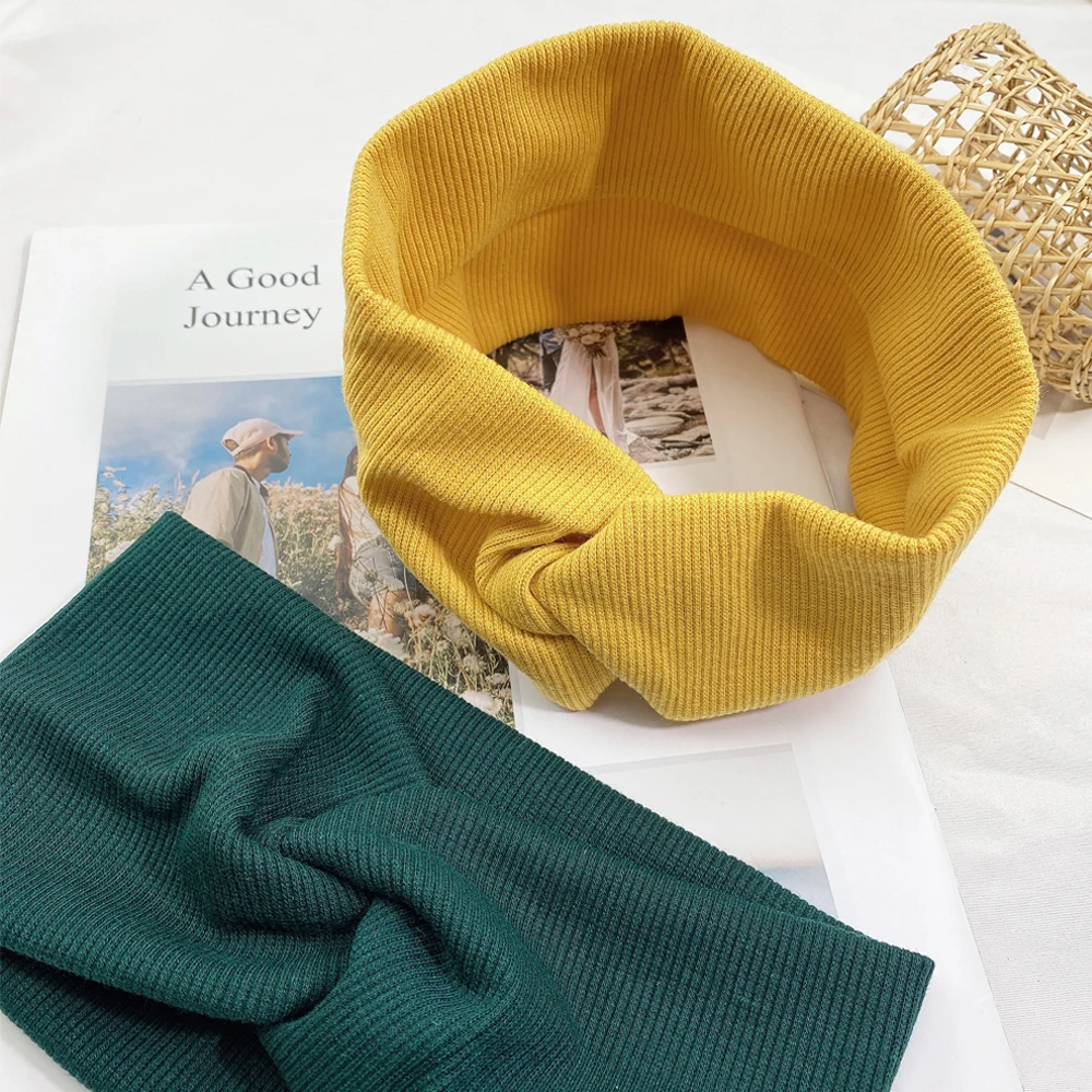 Женская однотонная повязка на голову, Трикотажная хлопковая повязка на голову, аксессуары для волос, витая повязка на голову с узлом