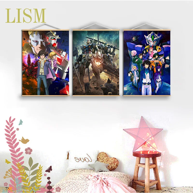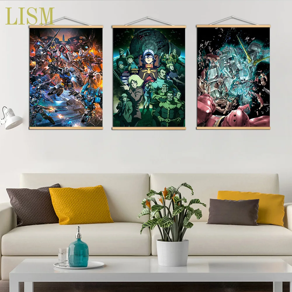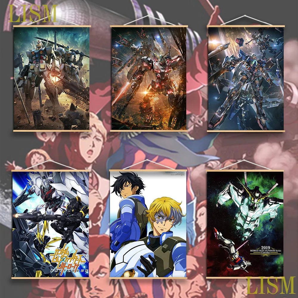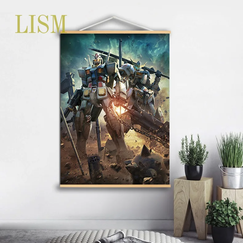 Мобильный костюм Gundam Unicorn UC Аниме Манга настенный постер из массива дерева подвесной свиток с картиной на холсте