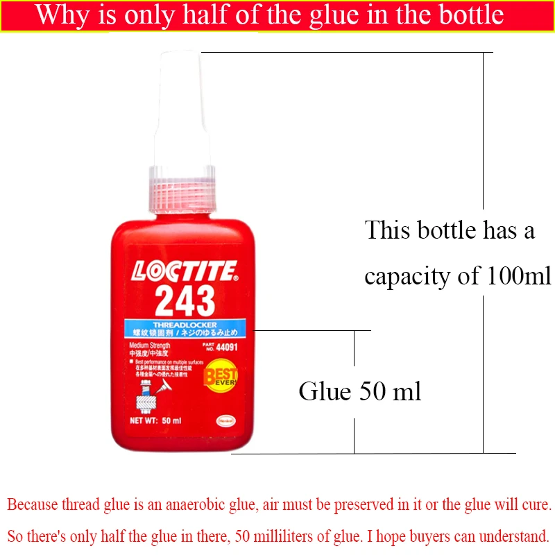 Особенности:Название продукта: Loctite 222Спецификация продукта 50 мл/250 млЦвет: фиолетовый жидкийХимический тип: метакрилатВязкость: 1200-5000 МПа, сКрутящий момент: 6 нмСкорость отверждения: начальная настройка/10 минут, полная Настройка/24 часаТермостойкость: - 54 °C + 150 °CСрок годности: 24 месяца (8-21 °C в прохладном и сухом месте)Применение:Подходит для большинства металлических поверхностей, съемных с помощью общих инструментов, для блокировки и герметизации нитей M2M12. Смазка для достижения точной нагрузки зажимаНазвание продукта: Loctite 241Спецификация: 50 мл/250 млЦвет: синийТип: общая цель/средняя прочность/тиксотропная вязкостьВязкость: 1200/5000 МПа. SСредний крутящий момент разборки: 4,9 нмСредний момент сбоя: 12,4 нмДиапазон температур: -18/150 ℃Скорость отверждения: 24 часаРекомендуемые ускорители: 7649/7471Относительная плотность: 1Используется для блокировки и уплотнения резьбовых соединений M6 - M2o. Это агент блокировки резьбы, который может быть разобран с помощью общих инструментов. Смазка для достижения точной нагрузки зажимаНазвание продукта: Loctite 242Посылка: 50/250 млЦвет изделия: синийВязкость: 1200/5000Скорость отверждения: 10 часовДиапазон температур: -54 °C/150 °CУдельный вес: 12,4Средний крутящий момент разборки: 4,9 нмСредний момент сбоя: 12,4 нмХарактеристики продукта: Этот продукт находится в состоянии изоляции воздуха в двух близко друг к другу между отверждением металла, особенно подходит для инертной поверхности, чтобы предотвратить ее из-за ударов и вибрации, вызванных ослаблением и утечкойНазвание продукта: Loctite 243Посылка: 50/250 млЦвет изделия: синийВязкость: 1300/3000Скорость отверждения: 3 часаДиапазон температур: -54 °C/150% CОтносительная плотность составляет 1,05Средний крутящий момент разборки: 7 нмСредний момент сбоя: 20 нмОсобенности продукта:Жидкий кислородный тип уплотнения продукта ударопрочный, ударопрочный и герметичныйНазвание продукта: Loctite 262Посылка: 50/250 млЦвет изделия: красныйТип продукта: запирающий агент/средний и высокопрочныйВязкость: 1200/2400Скорость отверждения: 10 часовДиапазон температур: -54 °C/150% °CОтносительная плотность 1,1Средний крутящий момент разборки: 32 нмСредний момент сбоя: 22 нмОсобенности продукта:Блокировочное уплотнение для резьбы до M20-это постоянный блокирующий резец с отличной коррозионной стойкостью и коррозионной стойкостью в экстремальных химических средахНазвание продукта: Loctite 263Спецификация продукта: 50/250 млЦвет: красная жидкостьХимический тип: метакрилатВязкость: 400-600 МПа, сКрутящий момент: 36 нмСкорость отверждения: начальная настройка/10 минут, полная Настройка/24 часаТермостойкость: - 54 °C + 150 °CСрок годности: 24 месяца (8-21 °C в прохладном и сухом месте)Применение:Подходит для постоянной блокировки болтов-гвоздиков и деталей под давлением для тяжелых применений, высокопрочная формула сочетает в себе все преимущества в одном. Термостойкость к 180 °C повышает надежность при высоких температурахНазвание продукта: Loctite 270Характеристики продукта 50/250 млЦвет: зеленая жидкостьХимический тип: метакрилатВязкость: 400-600 МПа, сКрутящий момент: 16-36 нмСкорость отверждения: начальная настройка/10 минут, полная Настройка/24 часаТермостойкость: - 54 °C + 150 °CСрок годности: 24 месяца (8-21 °C в прохладном и сухом месте)Применение:Во избежание ослабления и утечки резьбовых крепежных деталей, особенно для тяжелых деталей, таких как шпил