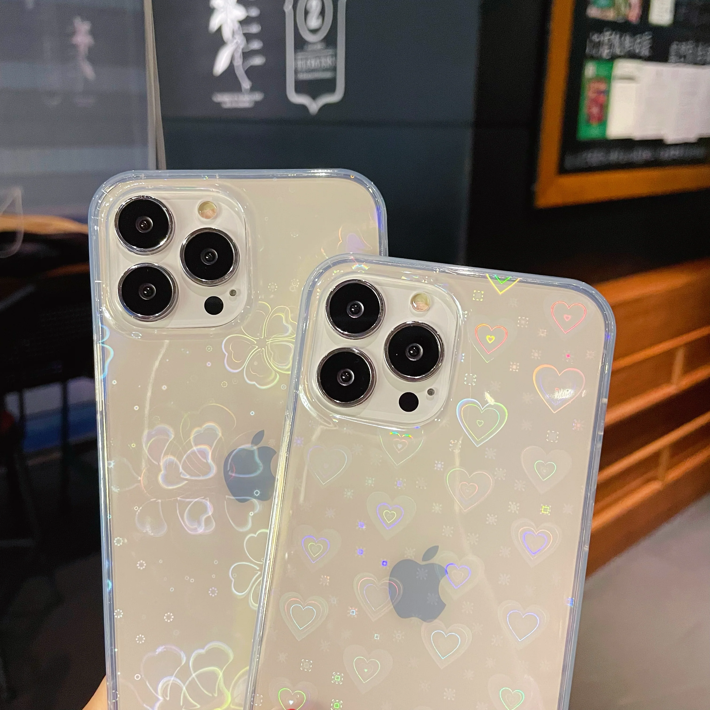 Прозрачный лазерный чехол для телефона с сердечками и листьями для ...