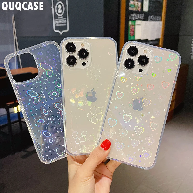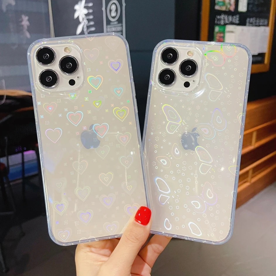 Светоотражающий голографический чехол с сердечками для телефона iPhone 13 11 Pro Max 12 Mini XR 7 8 Plus XS X SE 2020 чехол с градиентом лазера и бабочкой