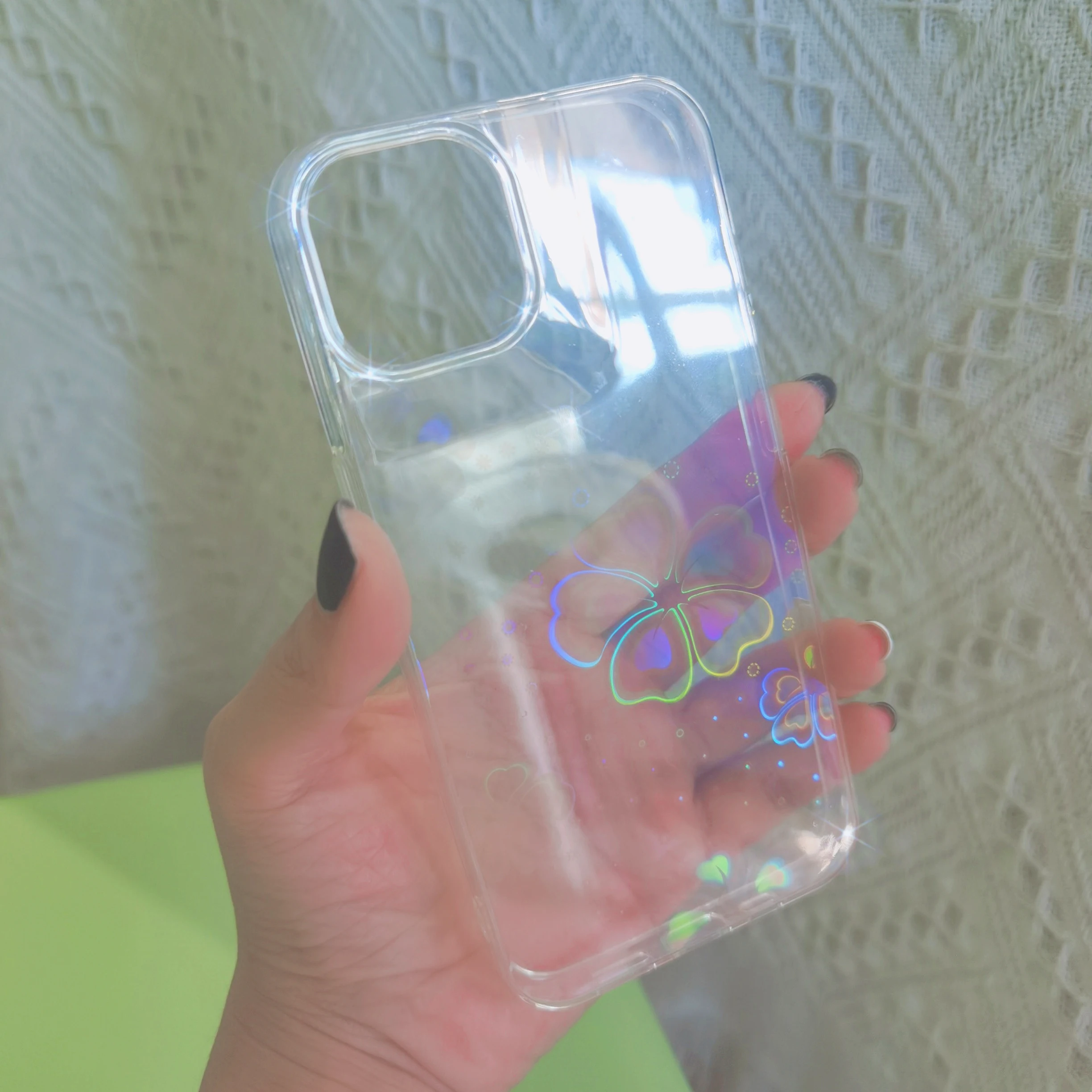 Светоотражающий голографический чехол для телефона с сердцем для iPhone 13 11 Pro Max 12 Mini XR 7 8 Plus XS X SE 2020 с лазерным градиентом бабочки