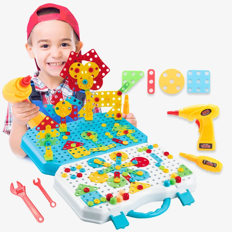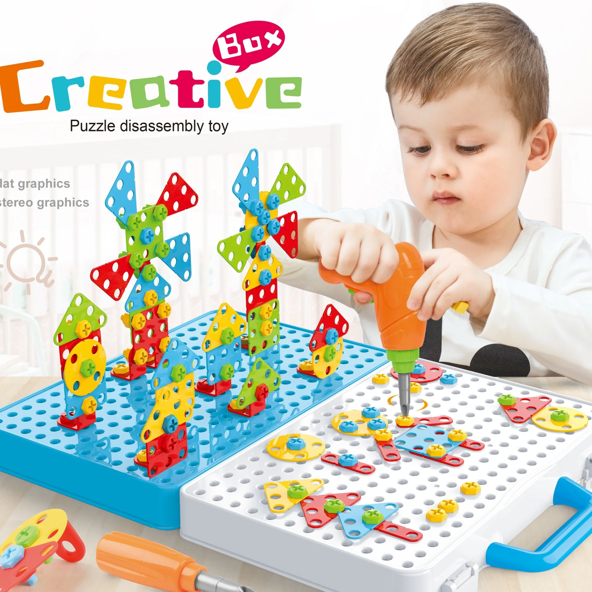 Сверлильный винт 3D креативный мозаичный пазл игрушки для детей Строительные кирпичи игрушки для детей DIY электрическая дрель набор обучающая игрушка для мальчиков