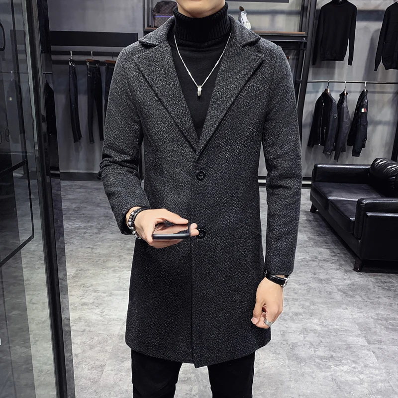 Тренчкот мужской зимний, приталенный силуэт, повседневная куртка из смешанной шерсти, плотный теплый длинный, деловой стиль, размеры 5XL
