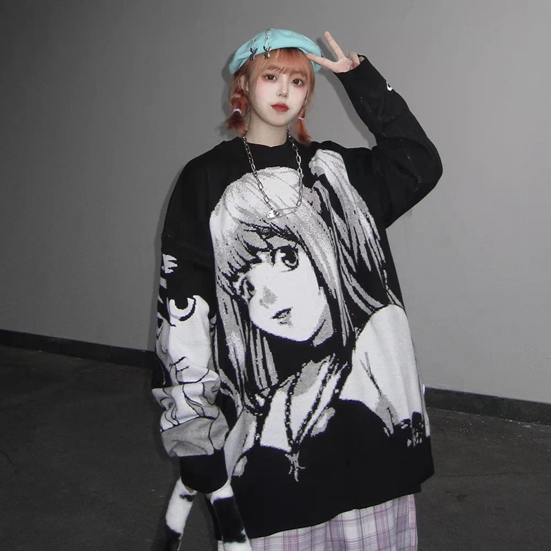Женский свитер с аниме-принтом Deeptown, винтажный трикотажный пуло...