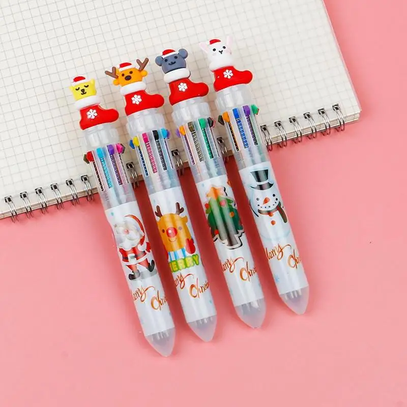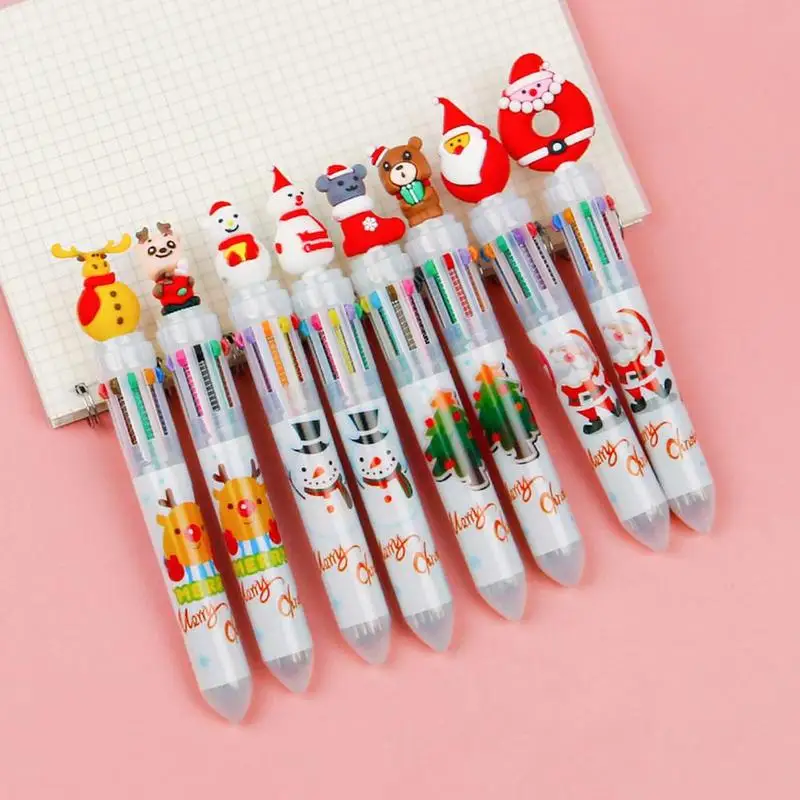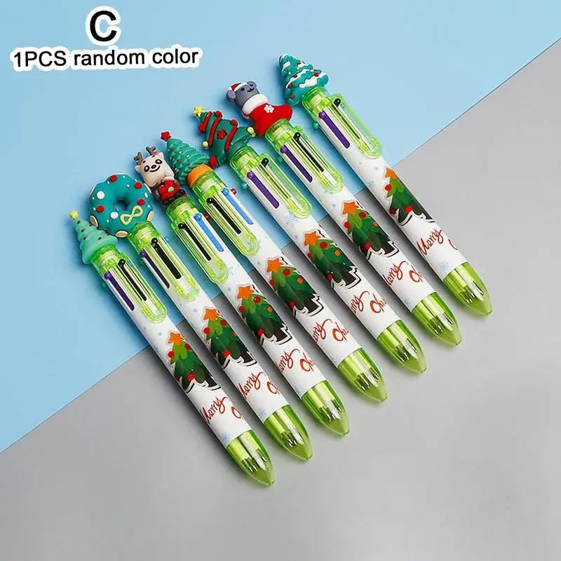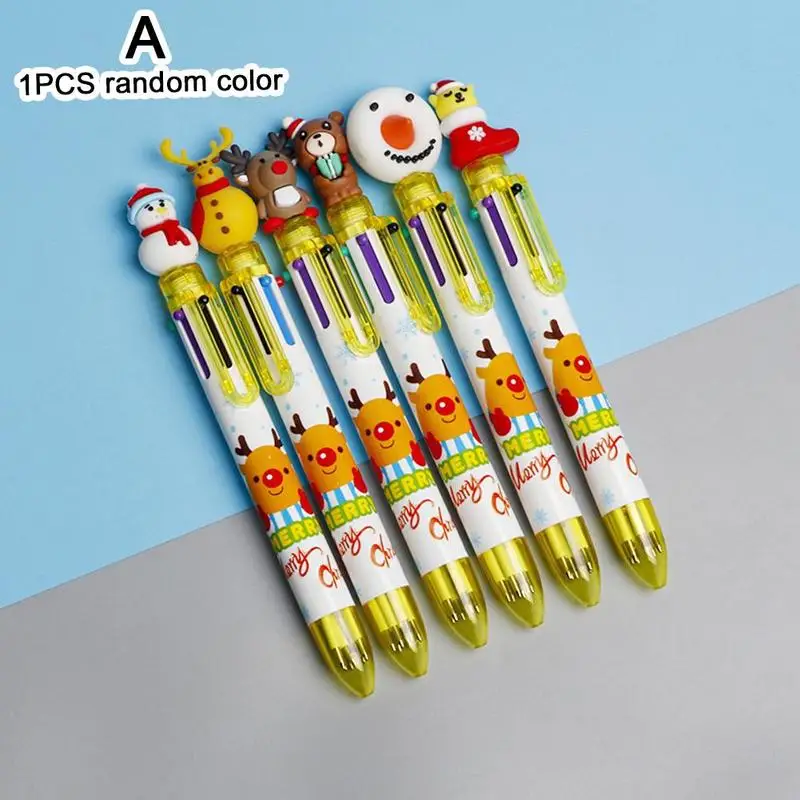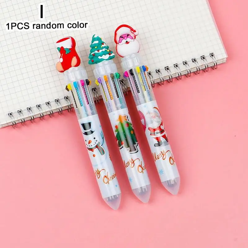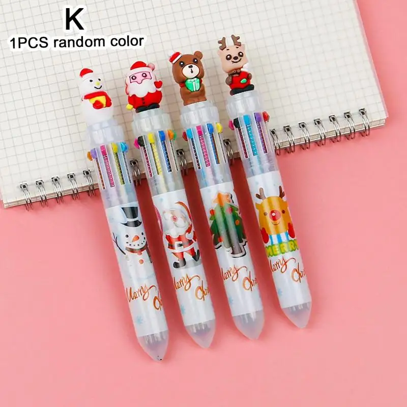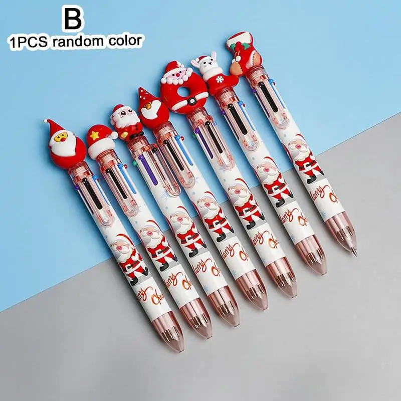 1 шт. Милая Рождественская шариковая ручка случайного цвета, кавайная ручка, школьный шарикоподшипник Санта-Клаус, выдвижная офисная Канцелярия C2a0