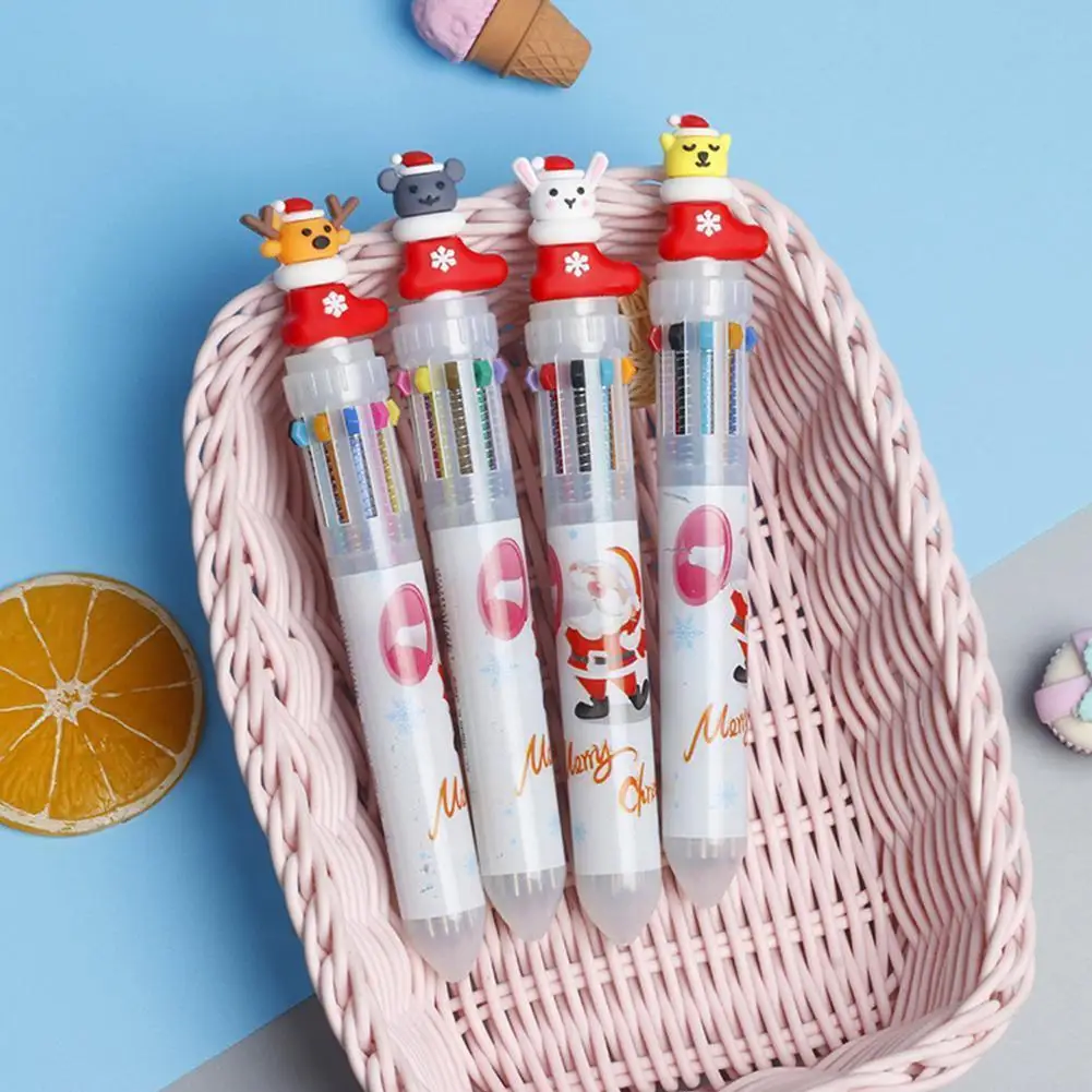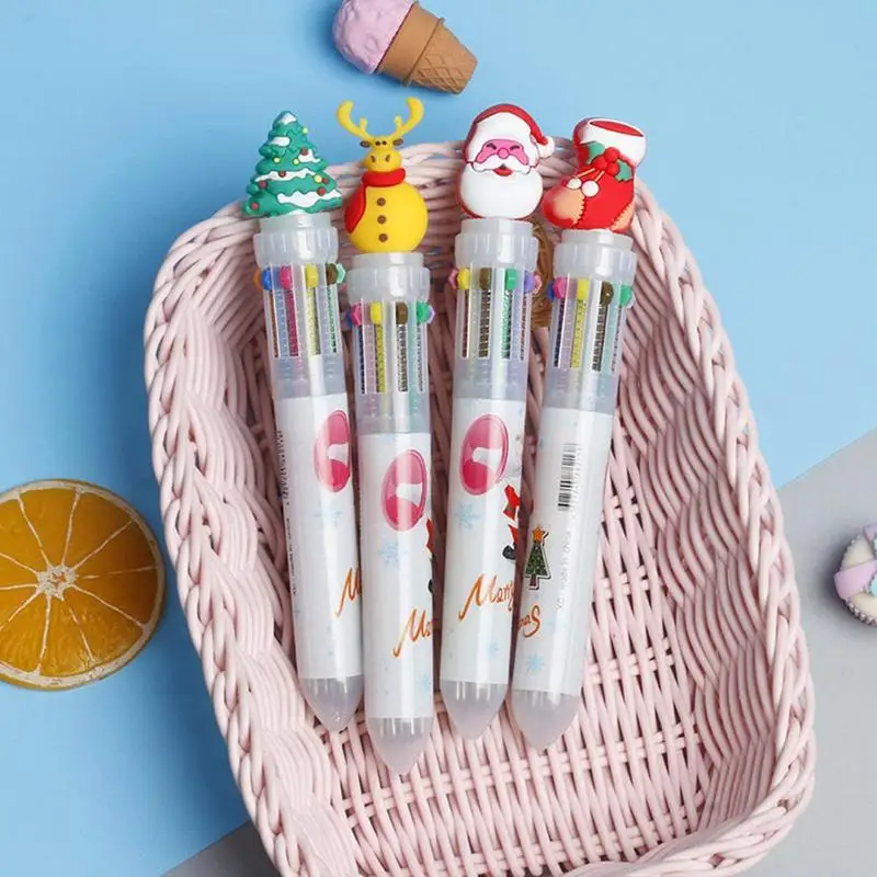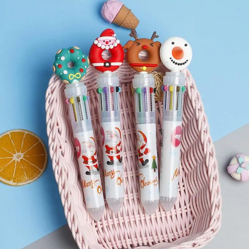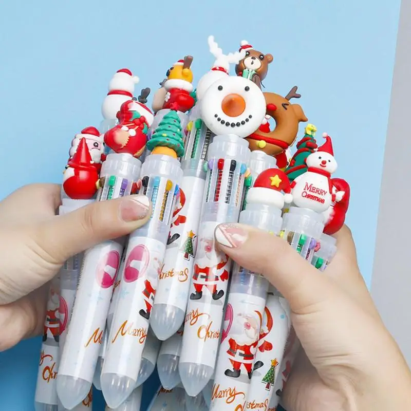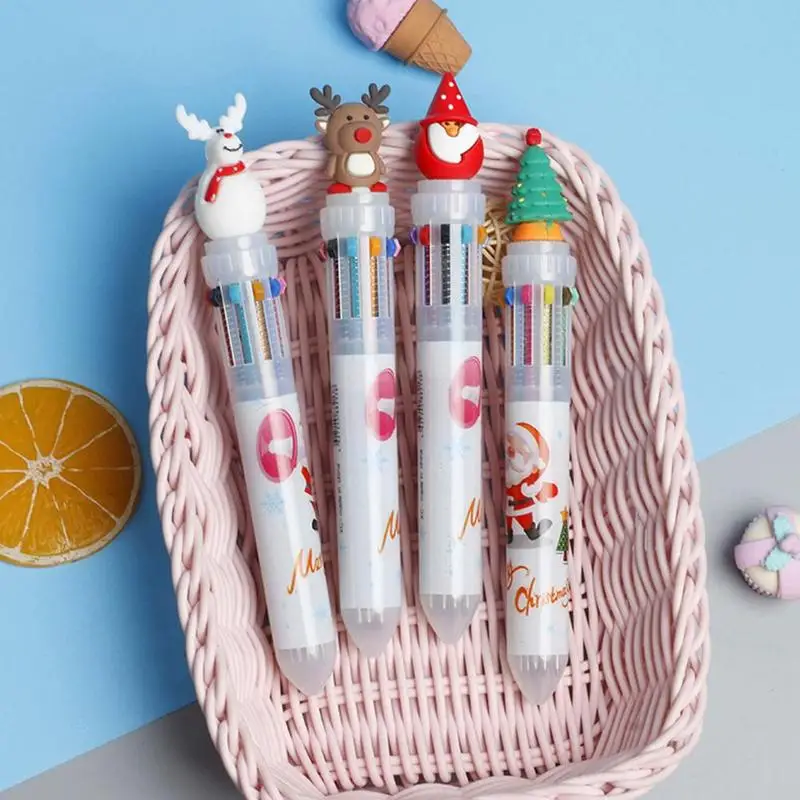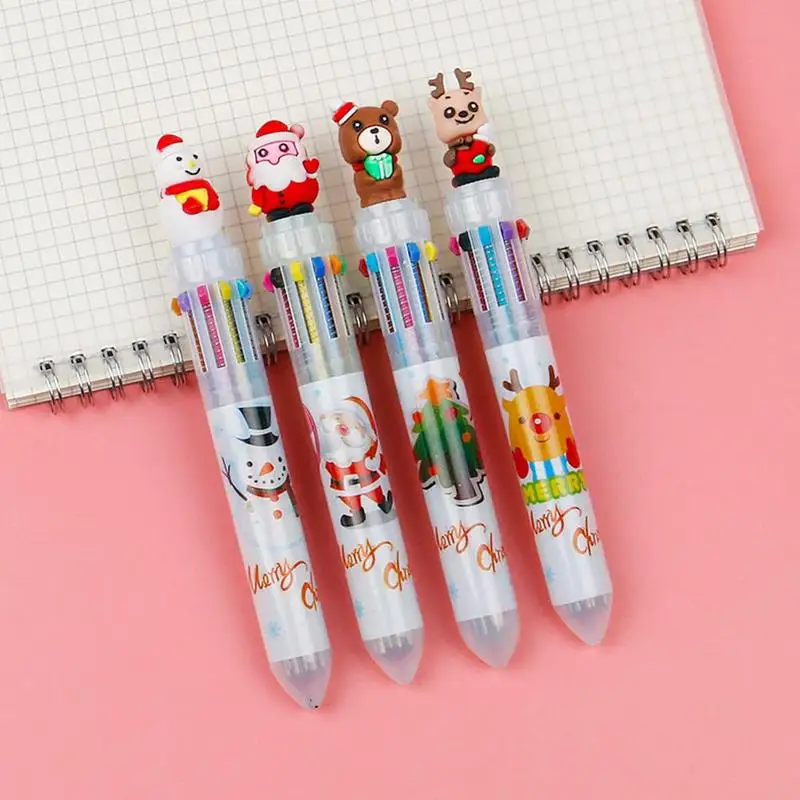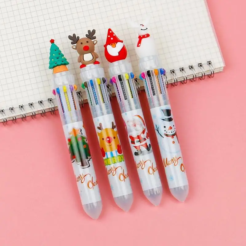 1 шт. Милая Рождественская шариковая ручка случайного цвета, кавайная ручка, школьный шарикоподшипник Санта-Клаус, выдвижная офисная Канцелярия C2a0