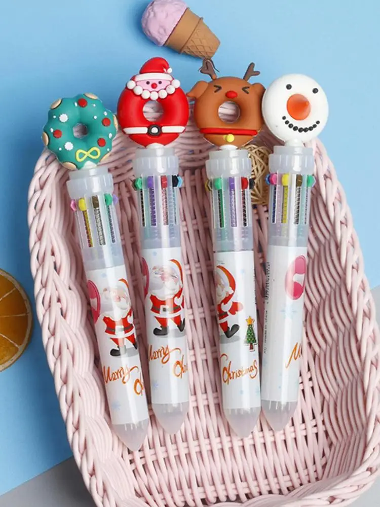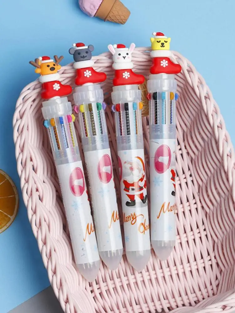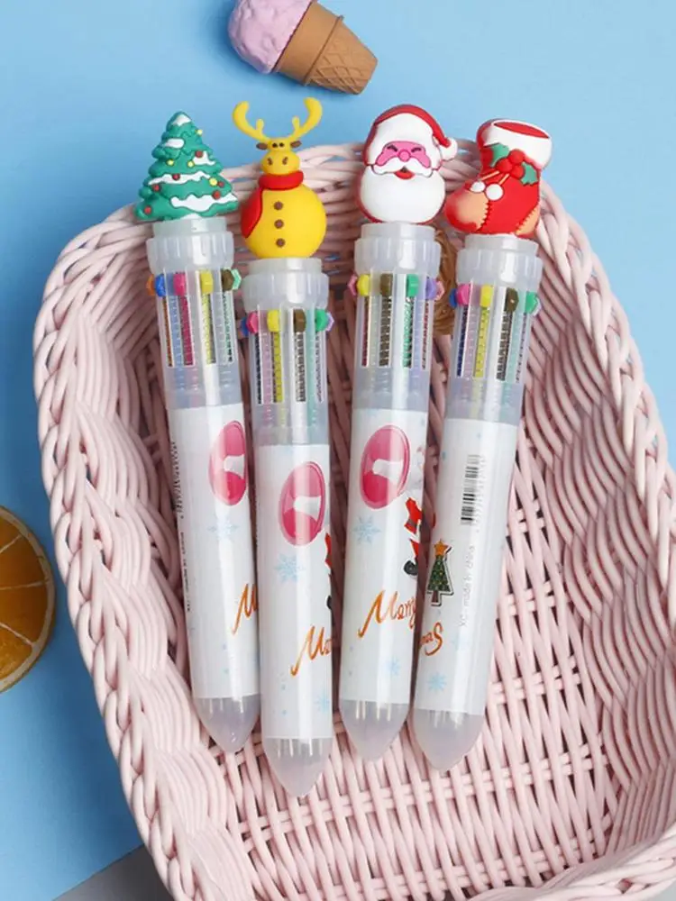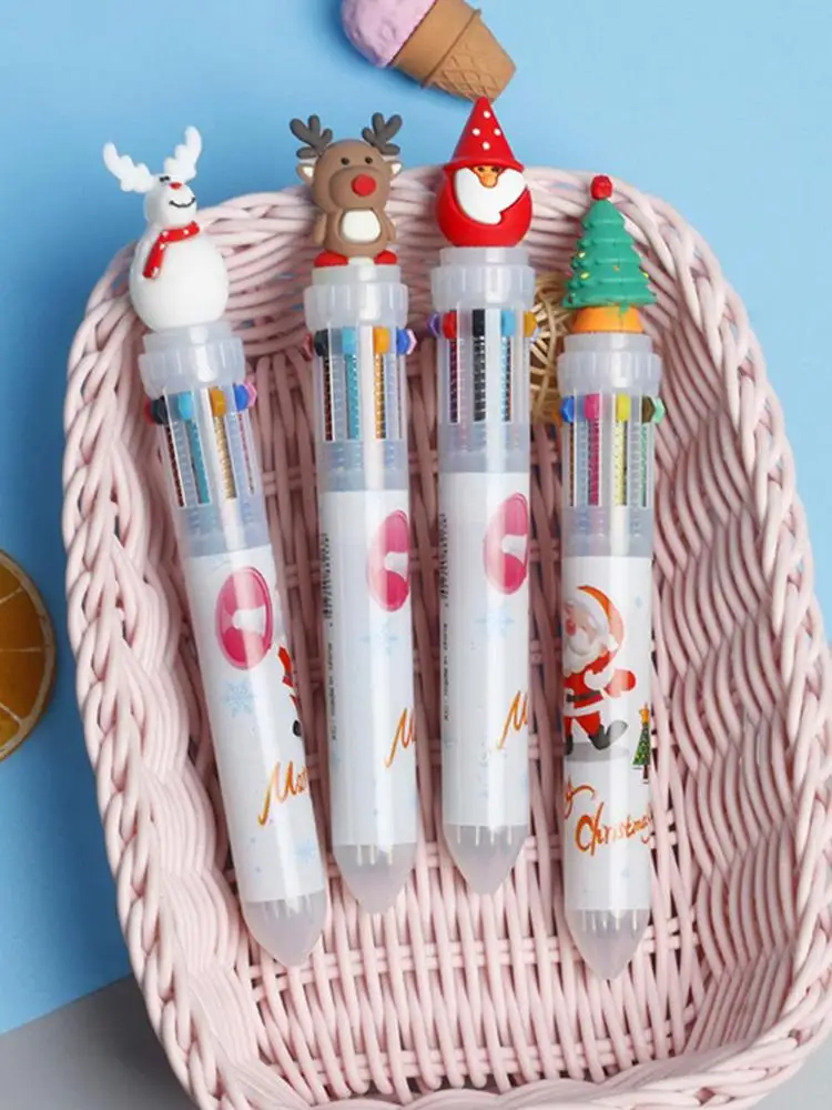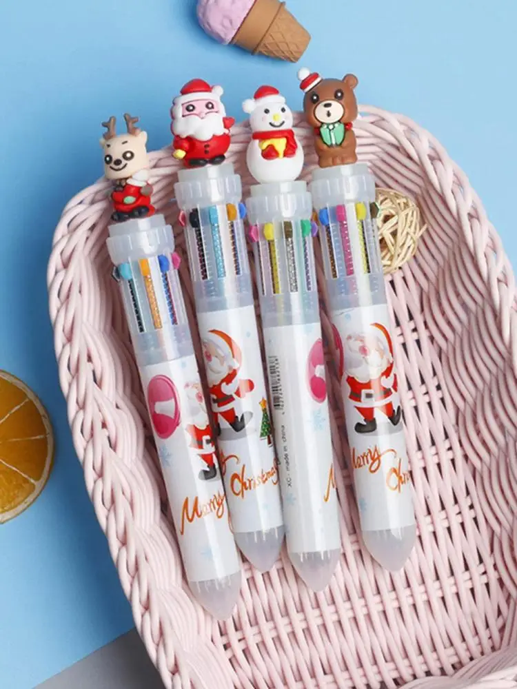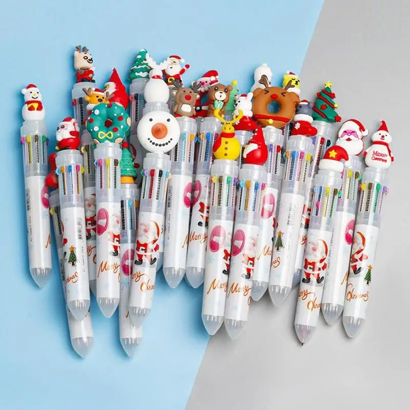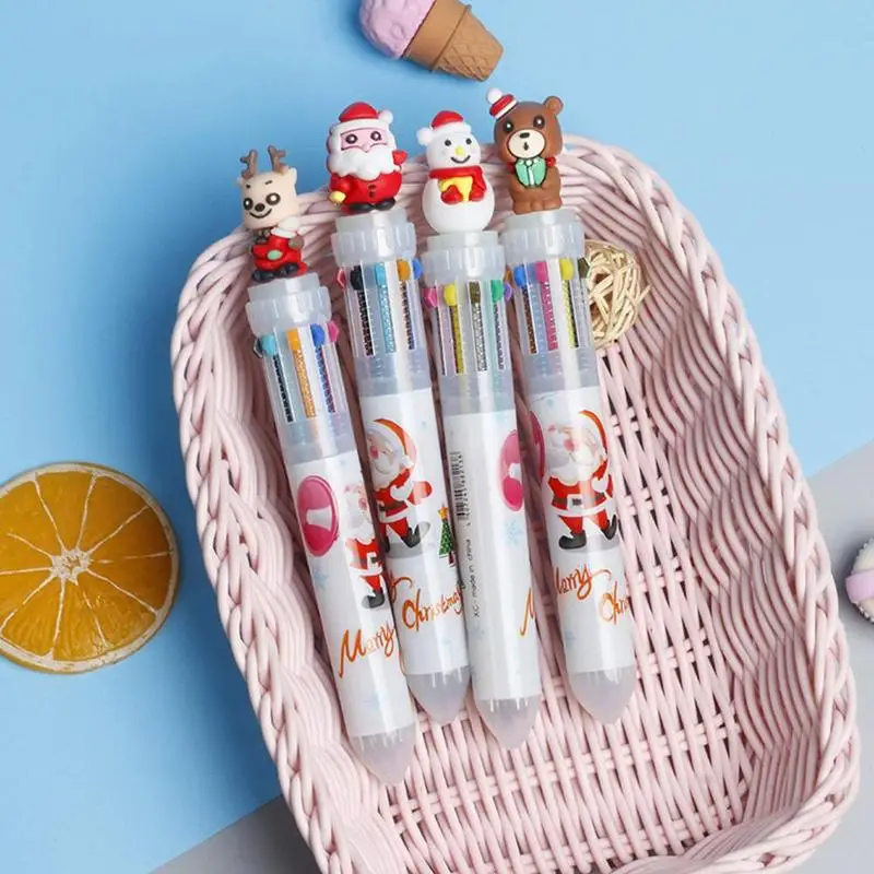 1 шт. Милая Рождественская шариковая ручка случайного цвета, кавайная ручка, школьный шарикоподшипник Санта-Клаус, выдвижная офисная Канцелярия C2a0