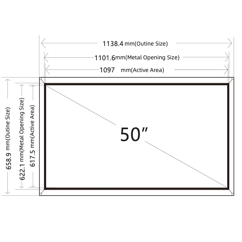 HaiTouch 50 дюймов 20 точек ir сенсорная рамка без стекла, ИК сенсорная панель накладки для LCD или TV,50 "инфракрасный сенсорный экранИнфракрасная сенсорная панельСенсорный экран IR-это сенсорная рамка, которая обычно устанавливается перед экраном дисплея. Рамка интегрирована с печатной платой, которая содержит линейку ИК-светодиодов и фототранзисторов Скрытый за рамкой сенсорной рамки. Каждый из ИК-светодиодов и фототранзисторов установлен на противоположных сторонах, чтобы создать сетку невидимого инфракрасного светильник. Рамка защищает части от операцииСупер преимущества для 50 дюймов 20 точек ИК мульти сенсорный экран:20 точек касания (мульти касание)Поддержка увеличения/уменьшения, вращение дисплеяUSB интерфейс, привод бесплатно, подключи и работайПоддержка 20 точек касания под windows7, windows8,windows10 и системой AndroidПоддержка одного касания в системе XP и LinuxВыдерживает сильные погодные условияСтабильная калибровка без дрейфаАнтивандальные и износостойкие экраны, идеально подходят для прочных примененийПараллакс-отсутствие производительности для ЖК-дисплеевГерметичный против загрязняющих веществРаботает в различных условиях светильник, крытый и открытый