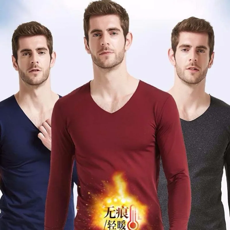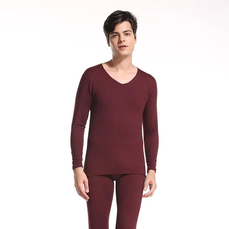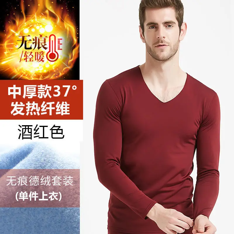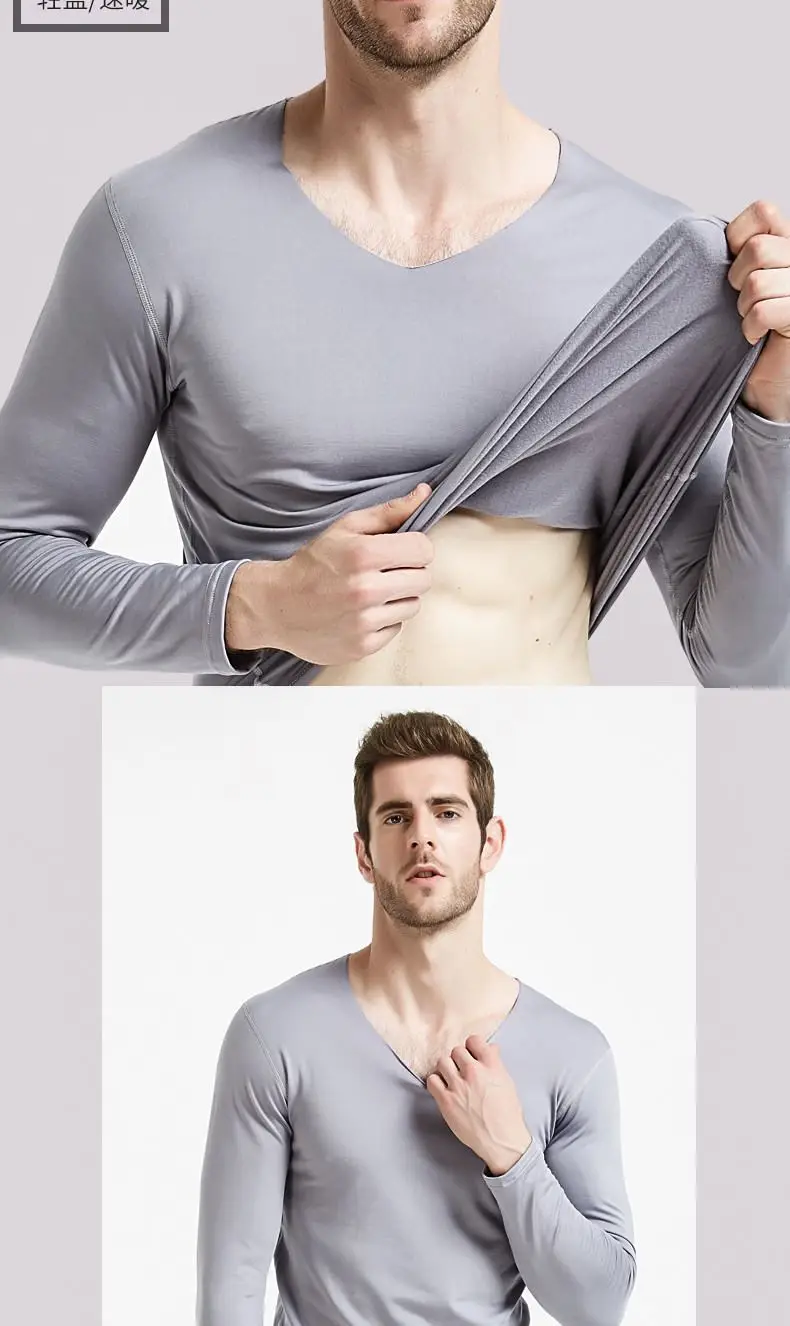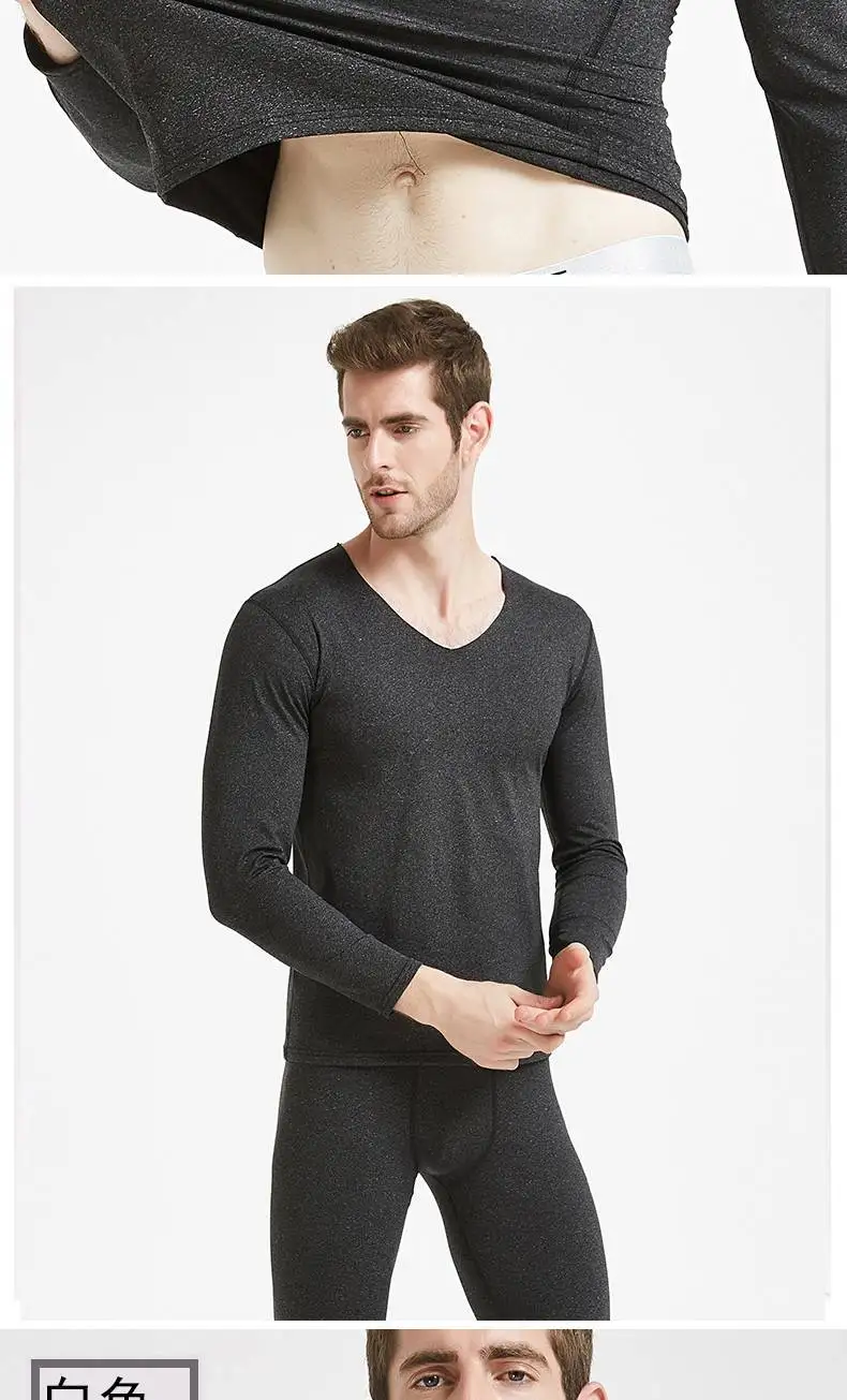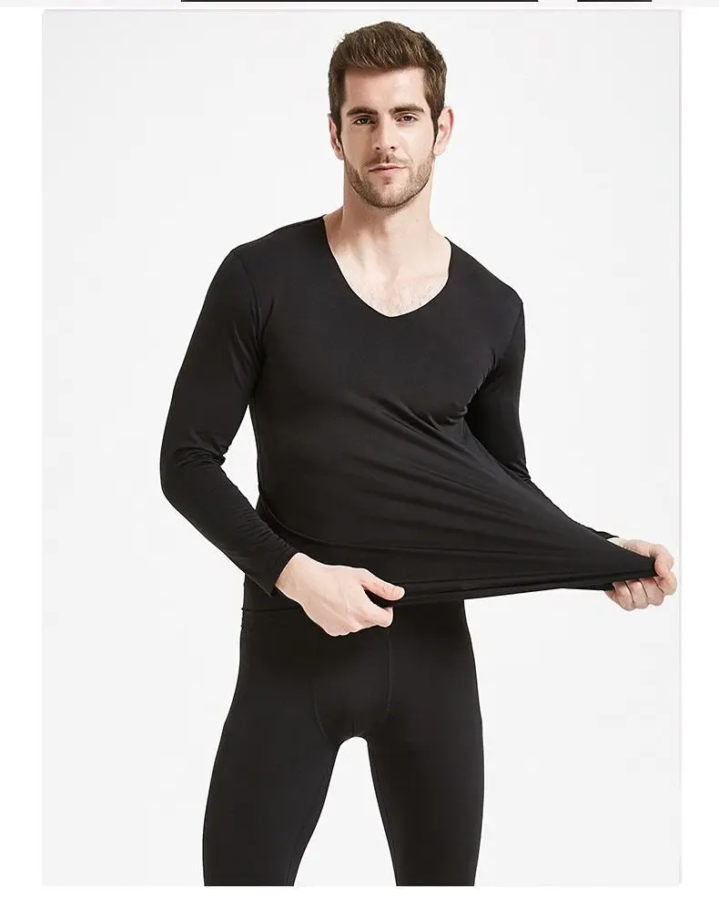 Мужское термобелье с V-образным вырезом, бесшовное бархатное длинно...