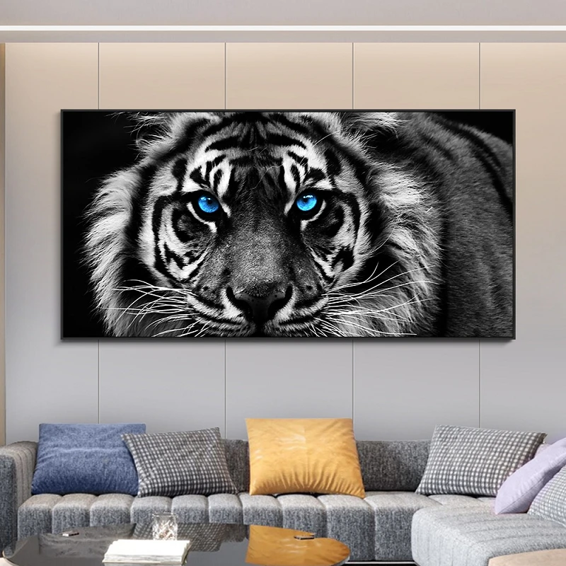 Современная картина с изображением головы тигра черно-белого цвета, настенные художественные плакаты с изображением животных, картина для гостиной, Декор