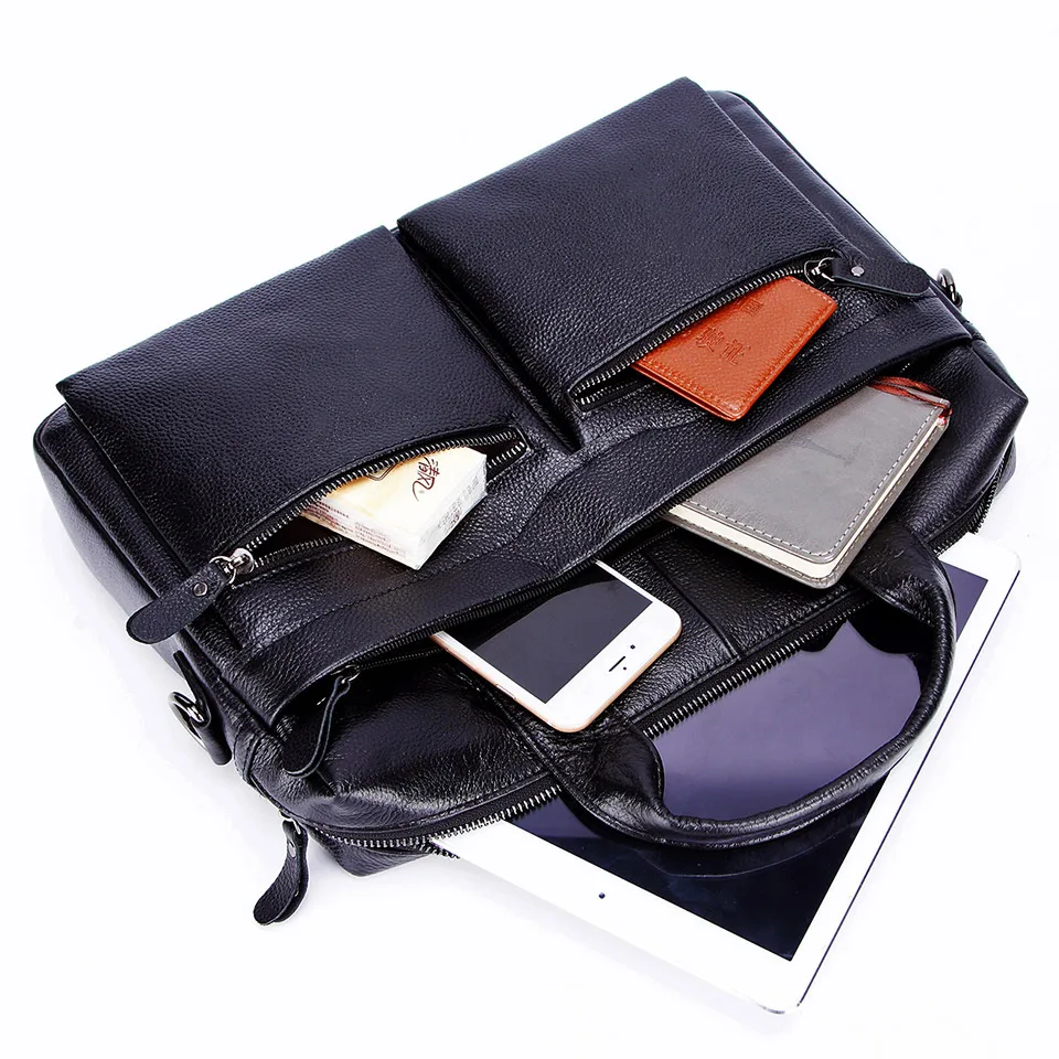 Черные мужские сумки из натуральной кожи, большой мессенджер для ноутбука 14 дюймов, деловые дорожные портфели на ремне