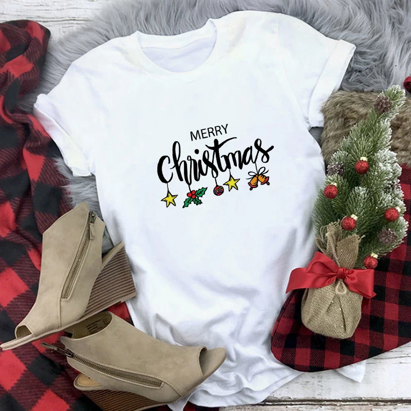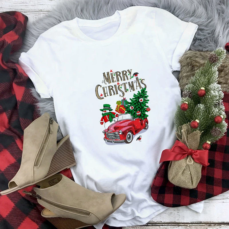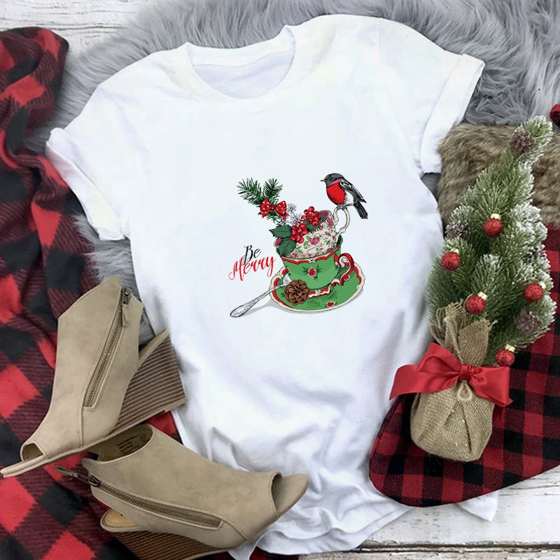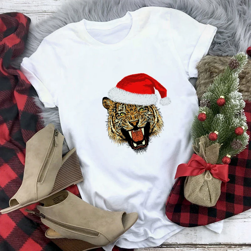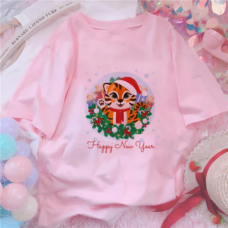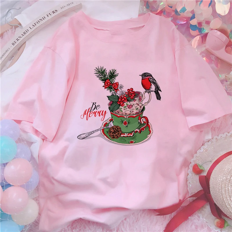 Женская рождественская футболка, модная футболка с принтом Санта-Клауса, женский розовый топ с забавным мультяшным оленем, женская одежда, футболка