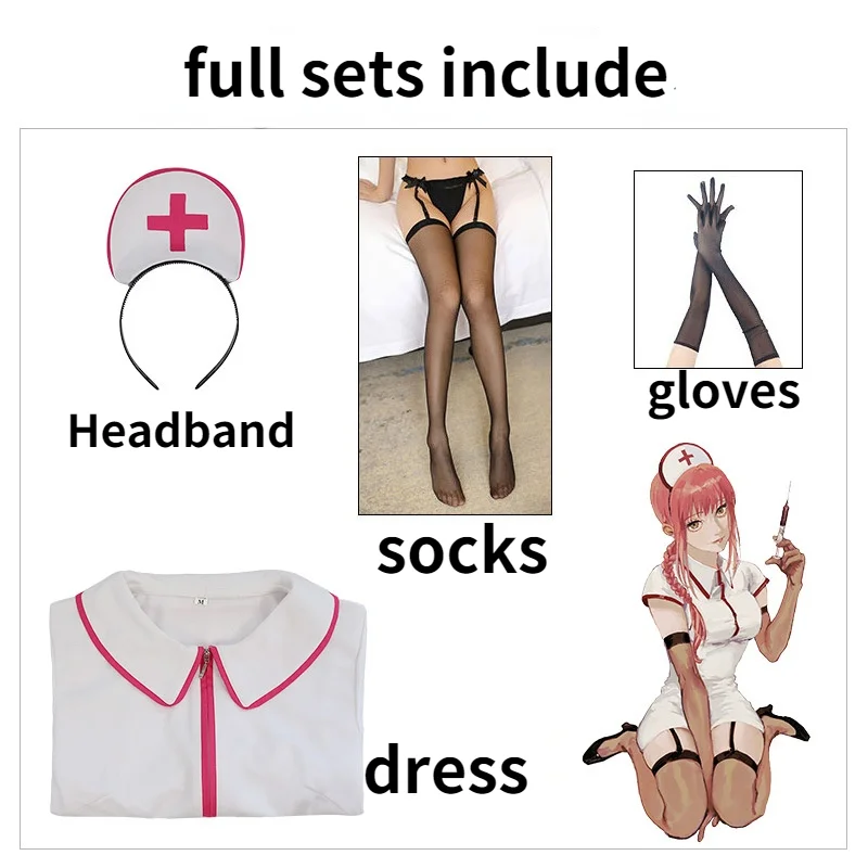 Униформа медсестры с цепной пилой для косплея макима, женское платье, соблазнительный костюм медсестры, полный костюм для косплея, наряды на Хэллоуин, карнавальный костюм
