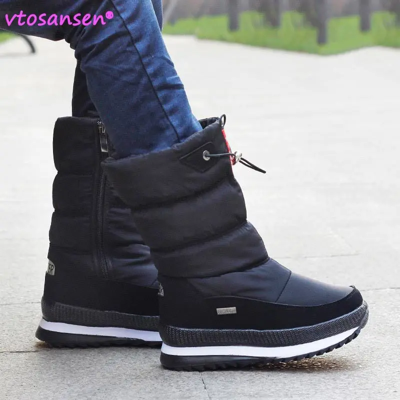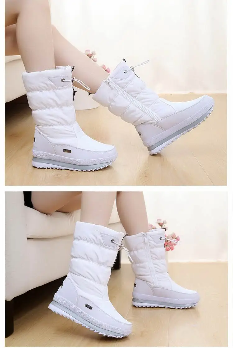 Женские зимние ботинки на толстой подошве, водонепроницаемые Нескользящие ботинки средней длины с плюшевой подкладкой, на молнии, теплые ботинки, размер 42, новинка 2021