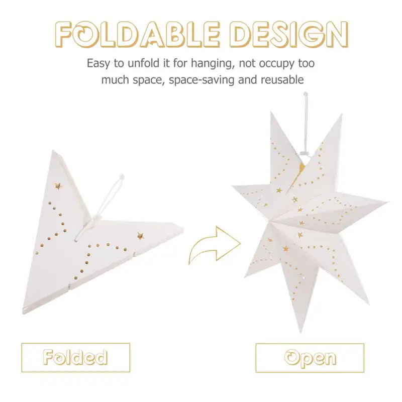 Полый бумажный фонарь в форме звезд, абажур, праздничные подвесные ...